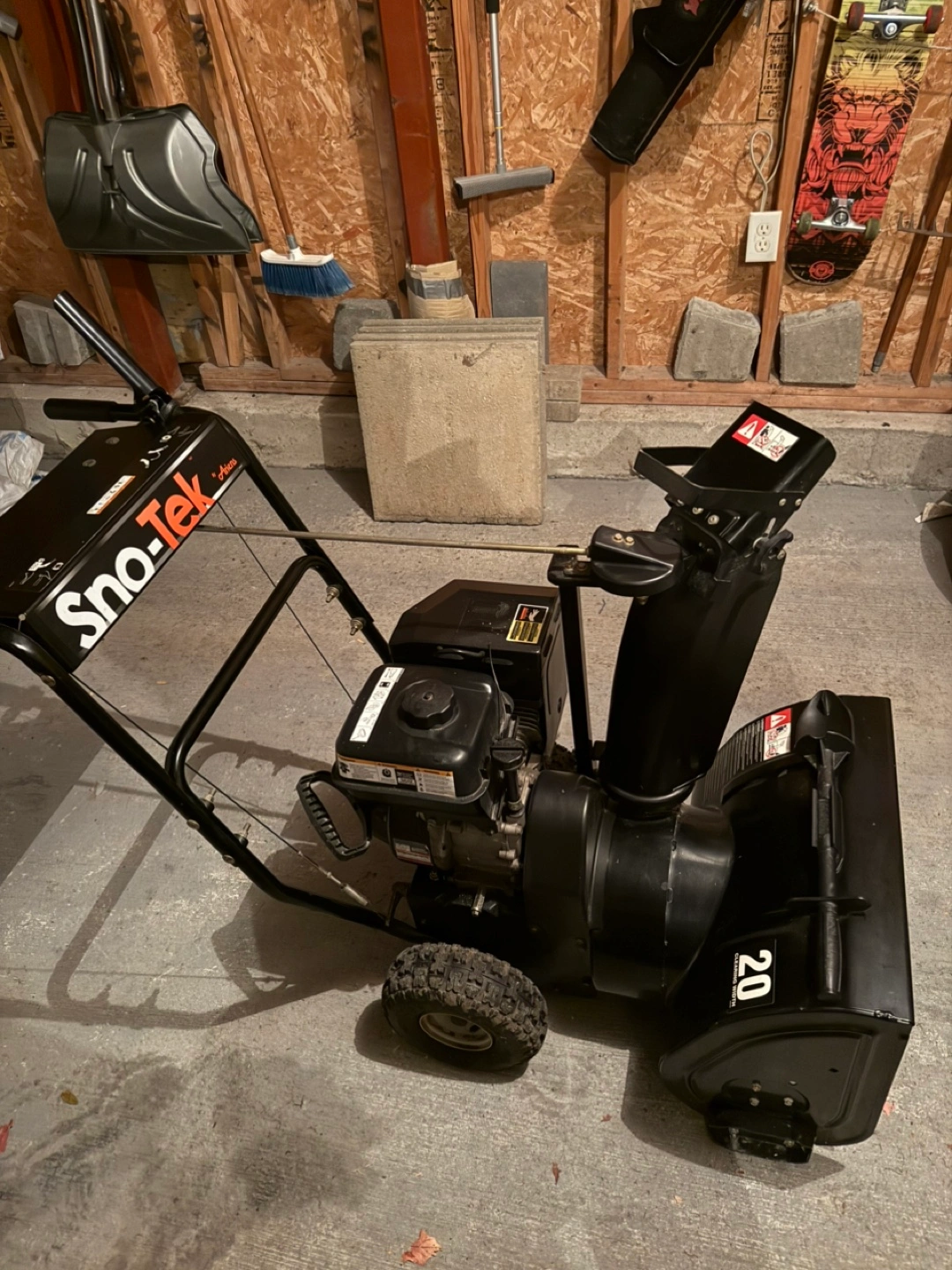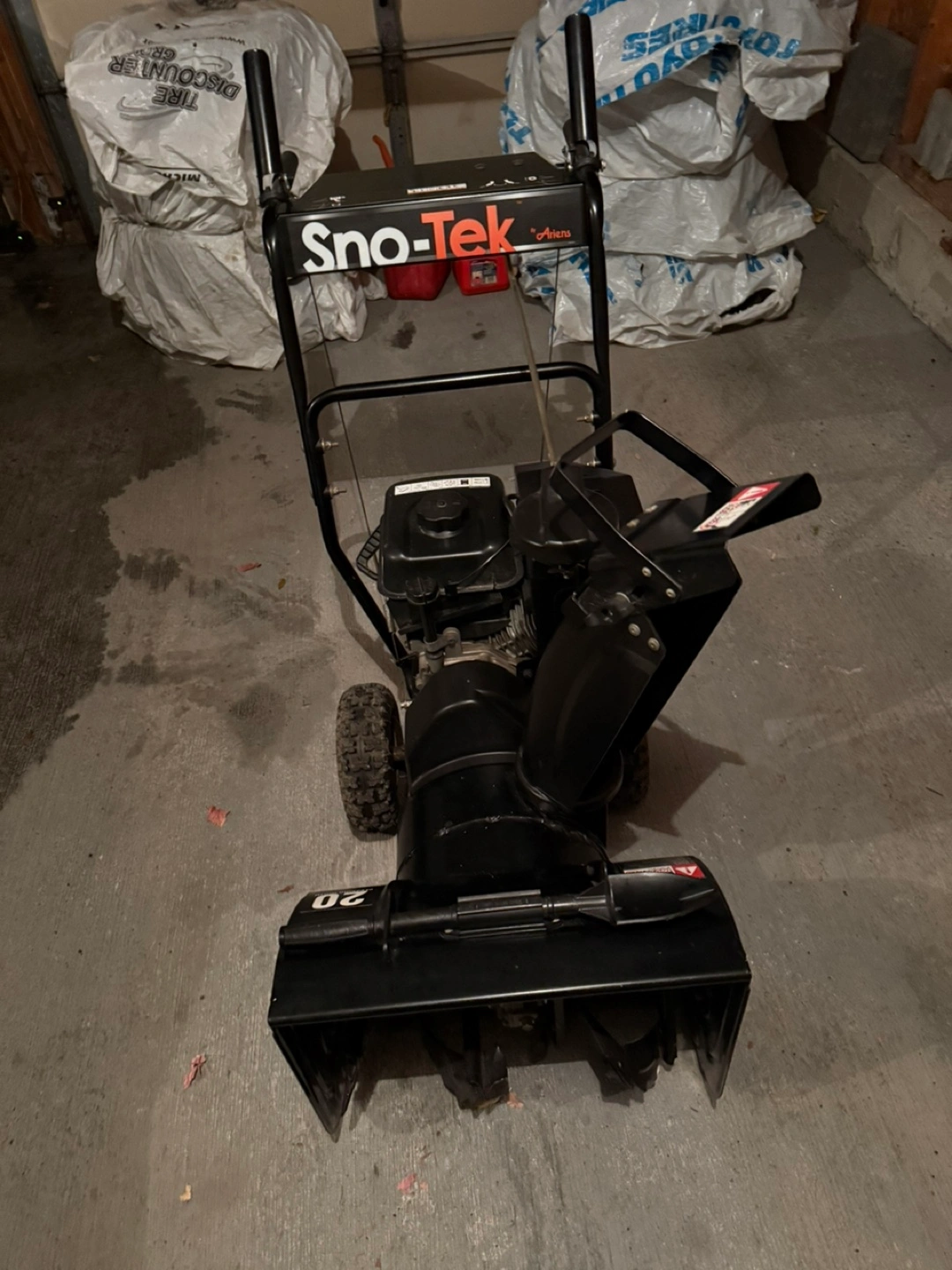 Selling a Sno-Tek 20" snowblower. It's in good working condition and ready to clear some snow! Runs reliably. There is a small gas leak somewhere but very slow. Does not affect performance. Never had a problem with it. Got a service this year so don’t need it any longer.