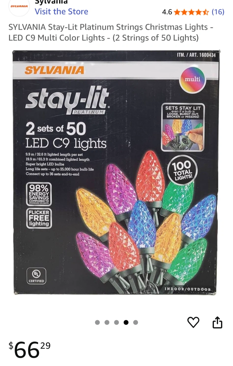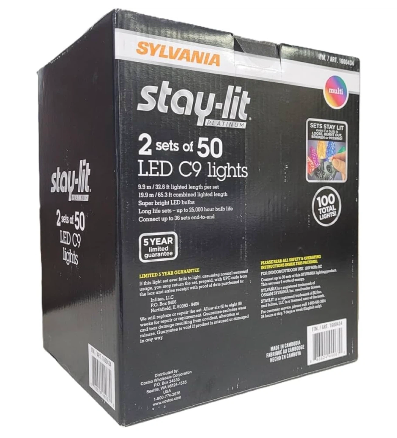 Sylvania Stay-Lit Platinum LED C9 Christmas Lights - NEW