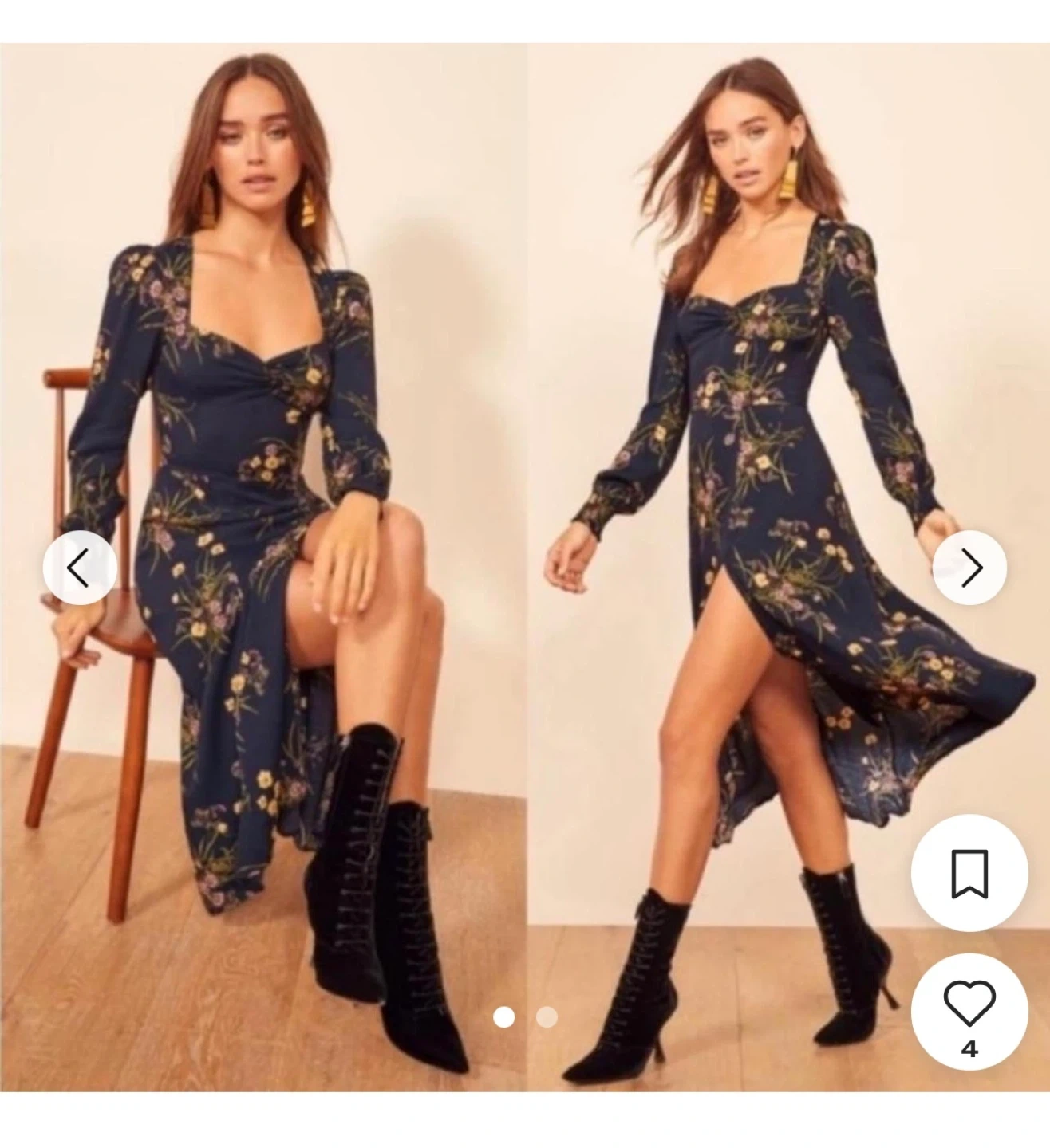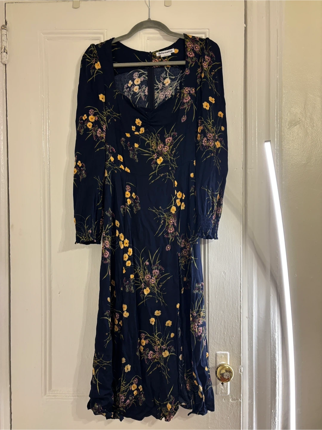 Beautiful Reformation midi dress in a navy floral print. It's perfect for any occasion! Size 4, in great condition.
