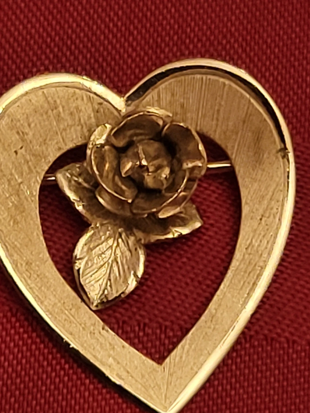 134Selling a beautiful vintage ECCo sterling silver brooch. It features a heart shape with a rose and leaf design. A lovely piece to add to any collection!