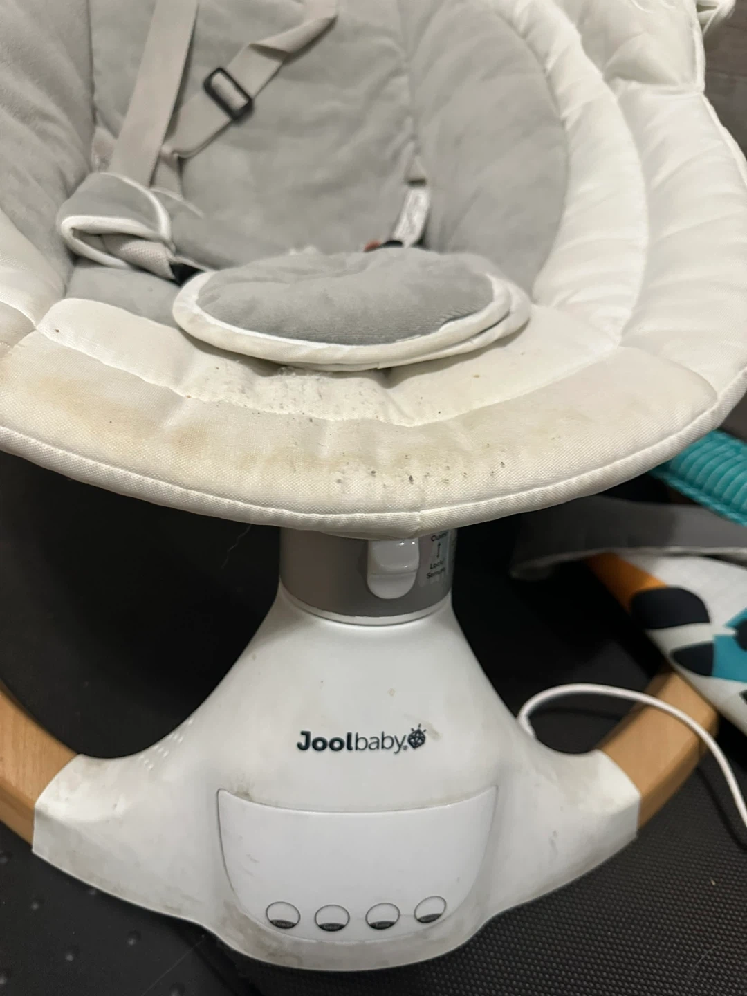 Selling a Joolbaby baby bouncer. It has a white and grey colour scheme and is in used condition. Please see photos for details!