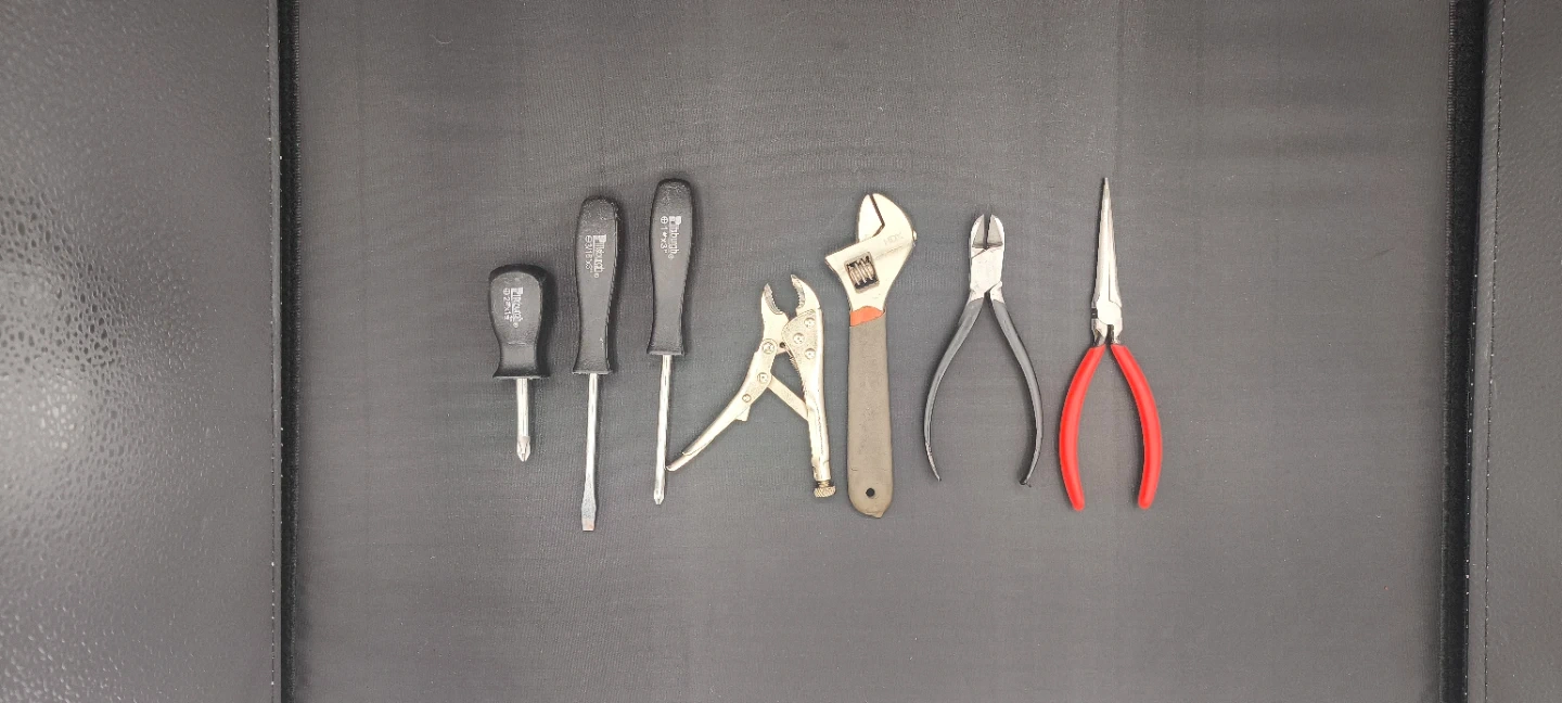Selling a set of hand tools. Includes screwdrivers, pliers, and a wrench. Good for any home project!