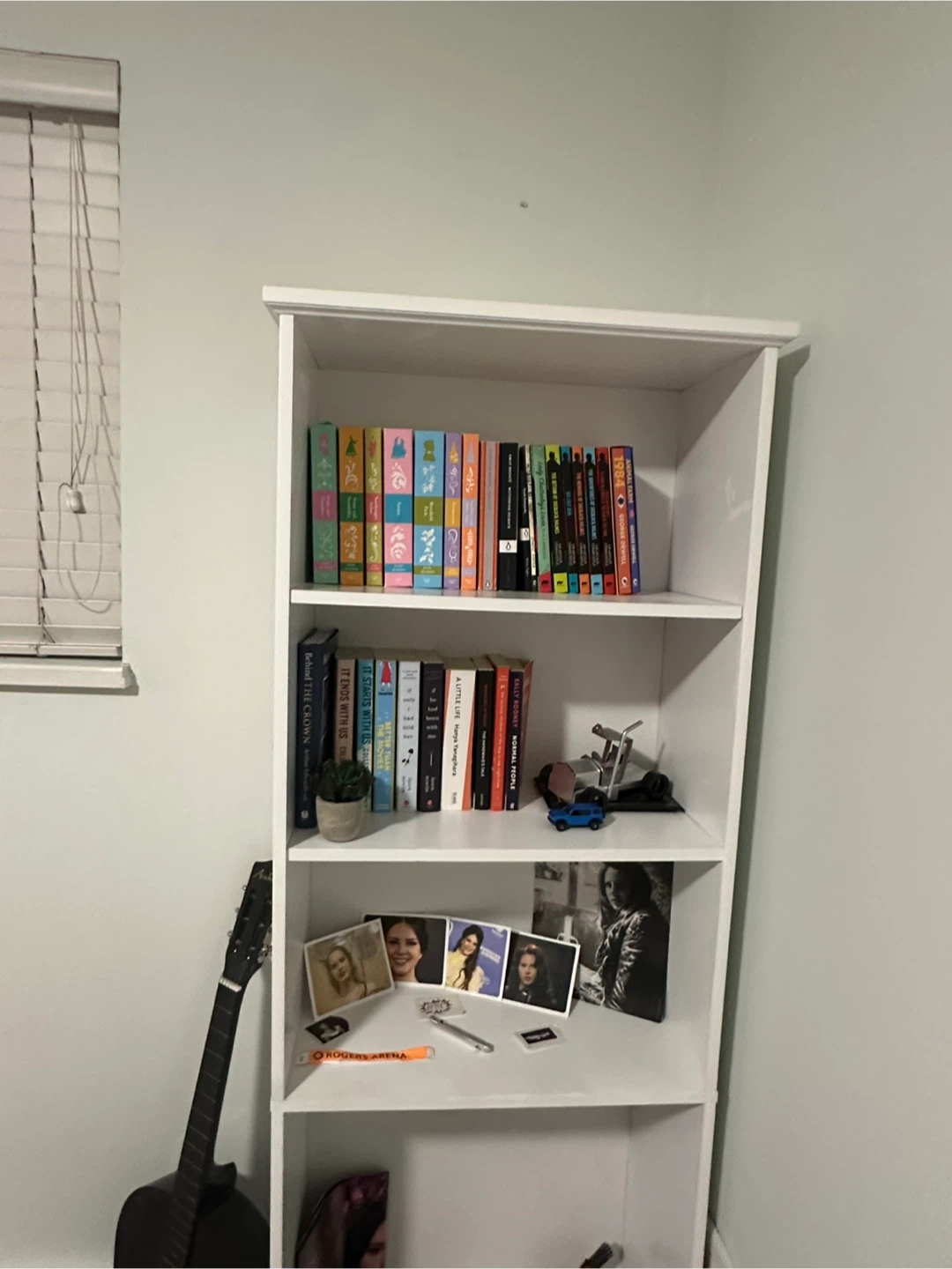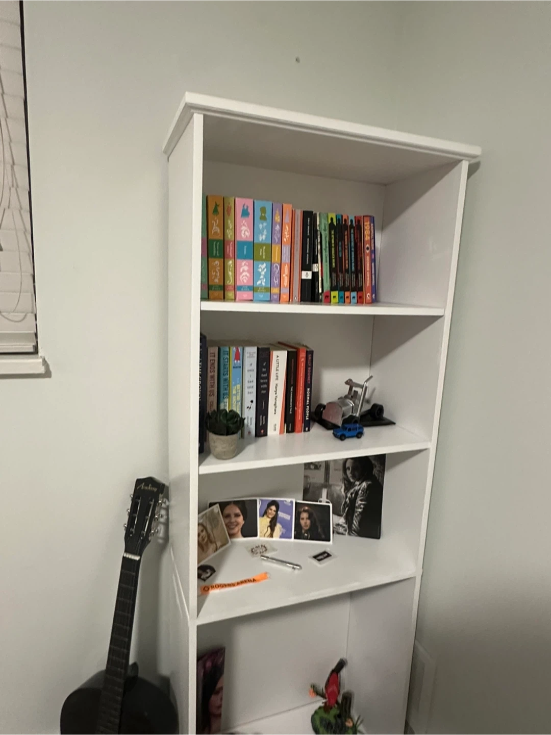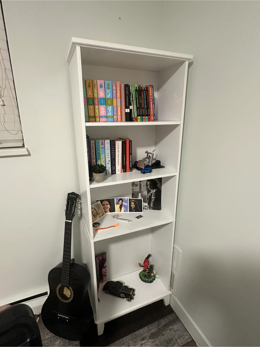 Selling a white bookshelf. It's in great condition and ready for a new home. Perfect for organizing your books, decor, or anything else you need to store