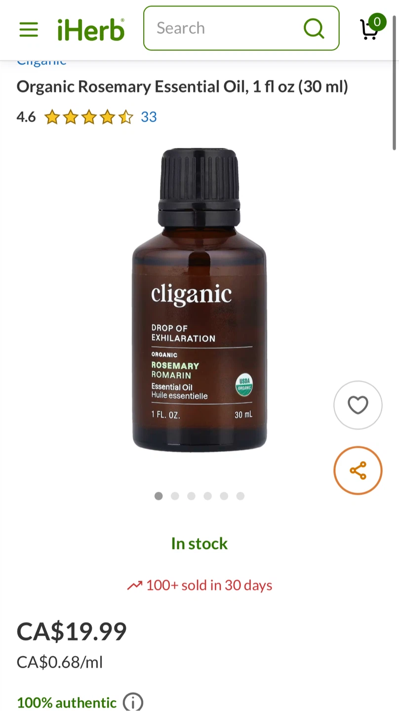 Selling a bottle of Cliganic Organic Rosemary Essential Oil! It's a drop of exhilaration in a bottle, perfect for adding to your diffuser or skincare routine. The bottle contains 1 fl oz (30 ml) of pure, organic rosemary oil. Originally bought for $19.99 CA
