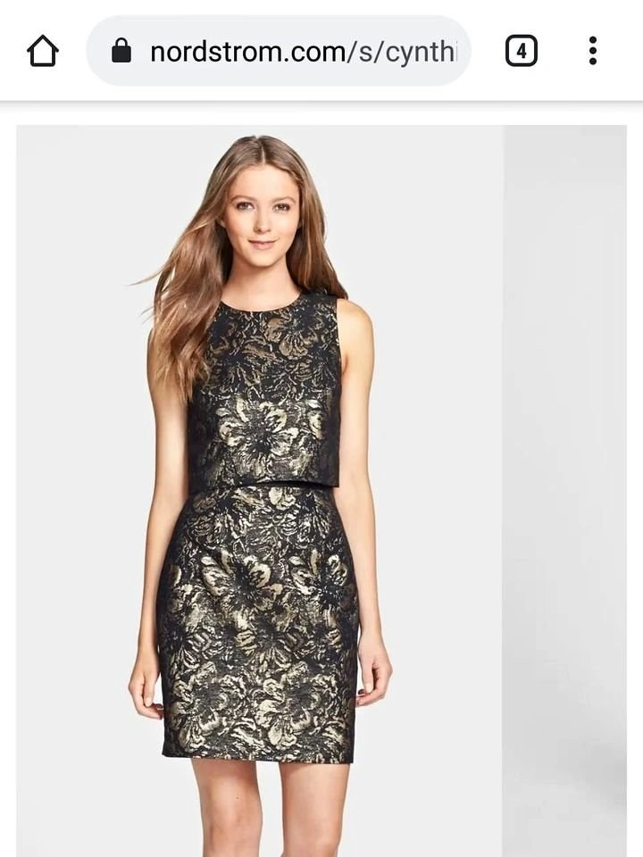 Cynthia Steffe Heather Metallic Jacquard Popover Dress. Stunner for Christmas or New Year's party.