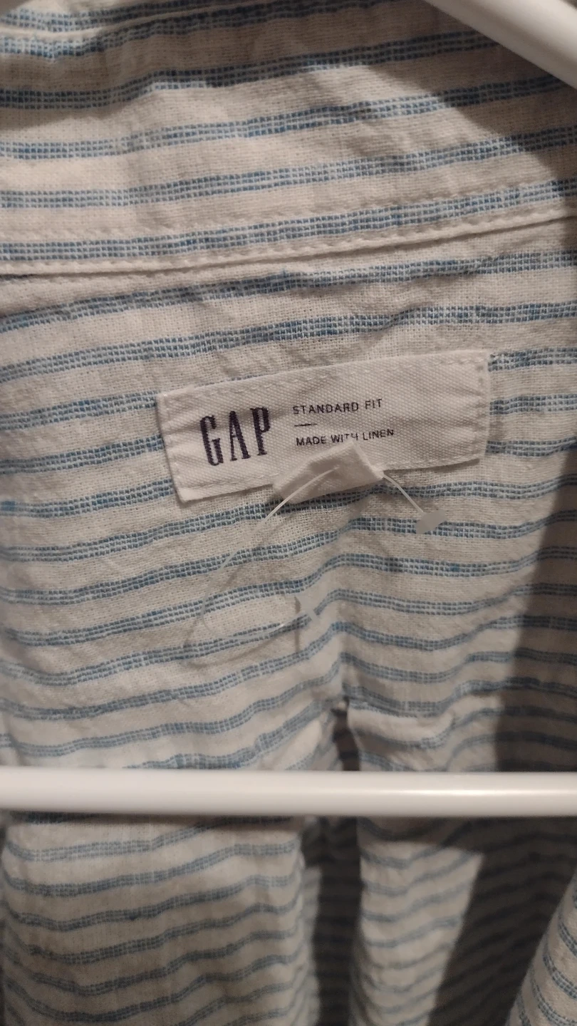 Here's a gently used GAP shirt in size XL! It features a classic striped pattern and is made with linen, perfect for a comfortable and stylish look.