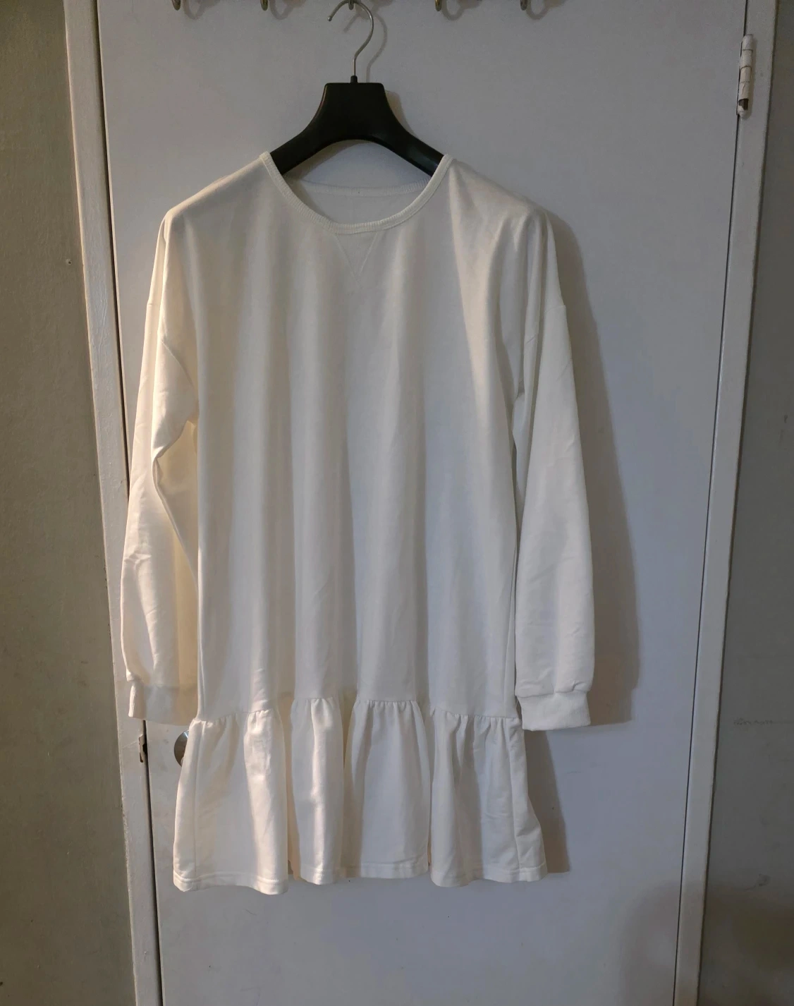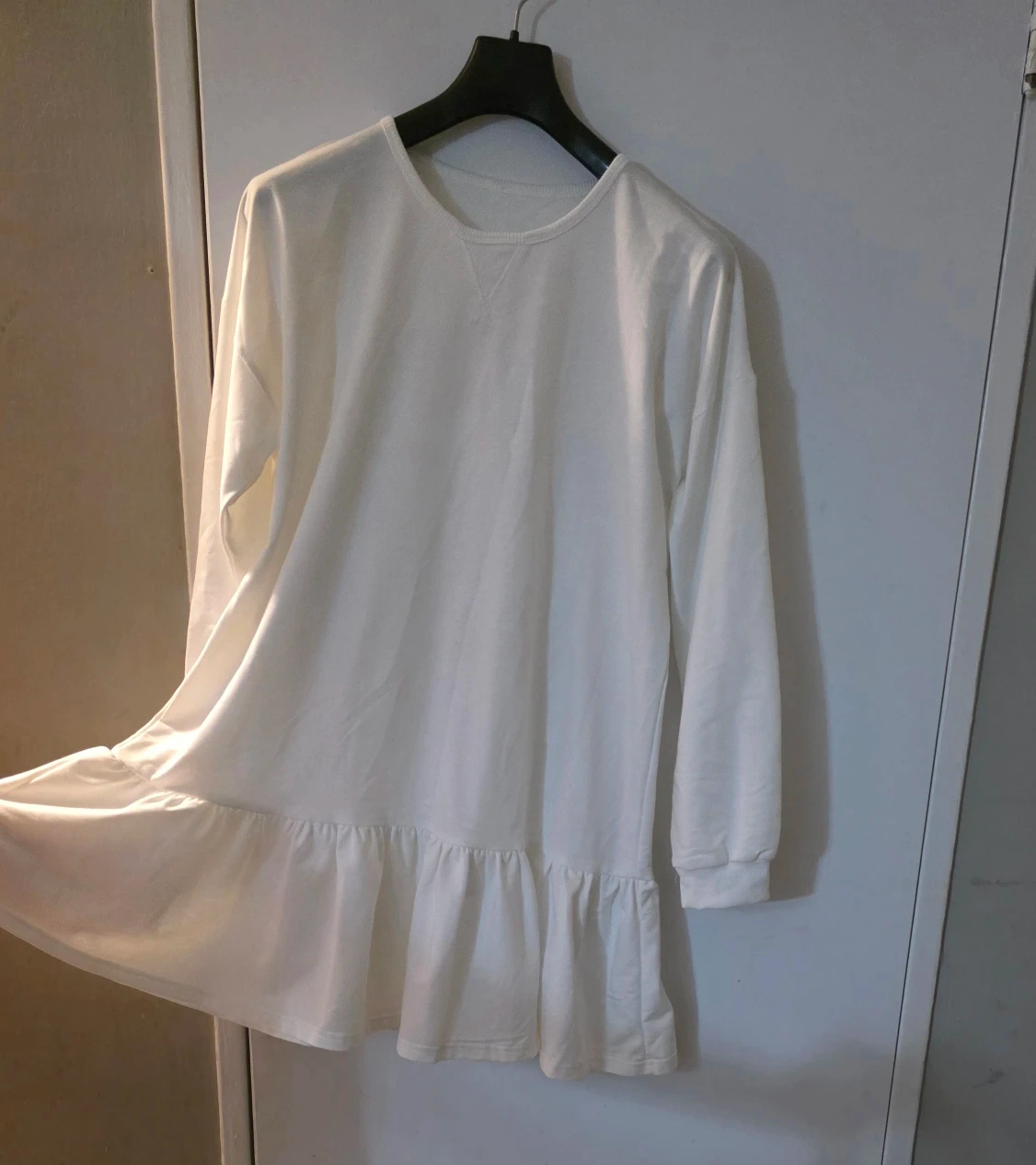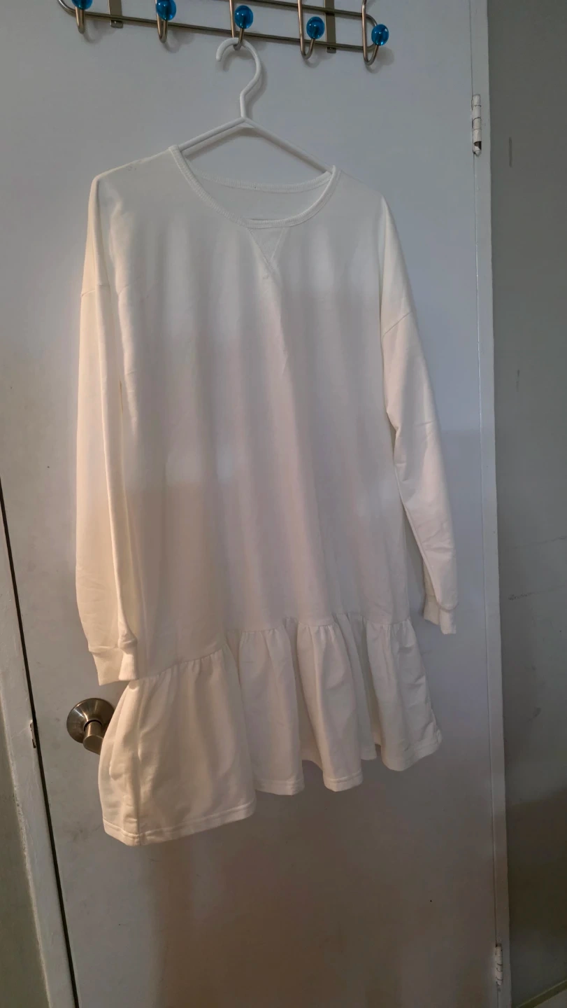 A cute and simple white long sleeve mini dress! It's in great condition and would be a lovely addition to your wardrobe. Perfect for a casual day out or dressed up for an evening event