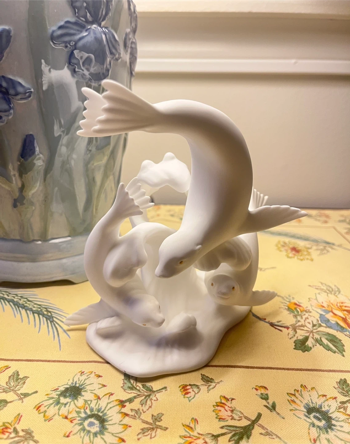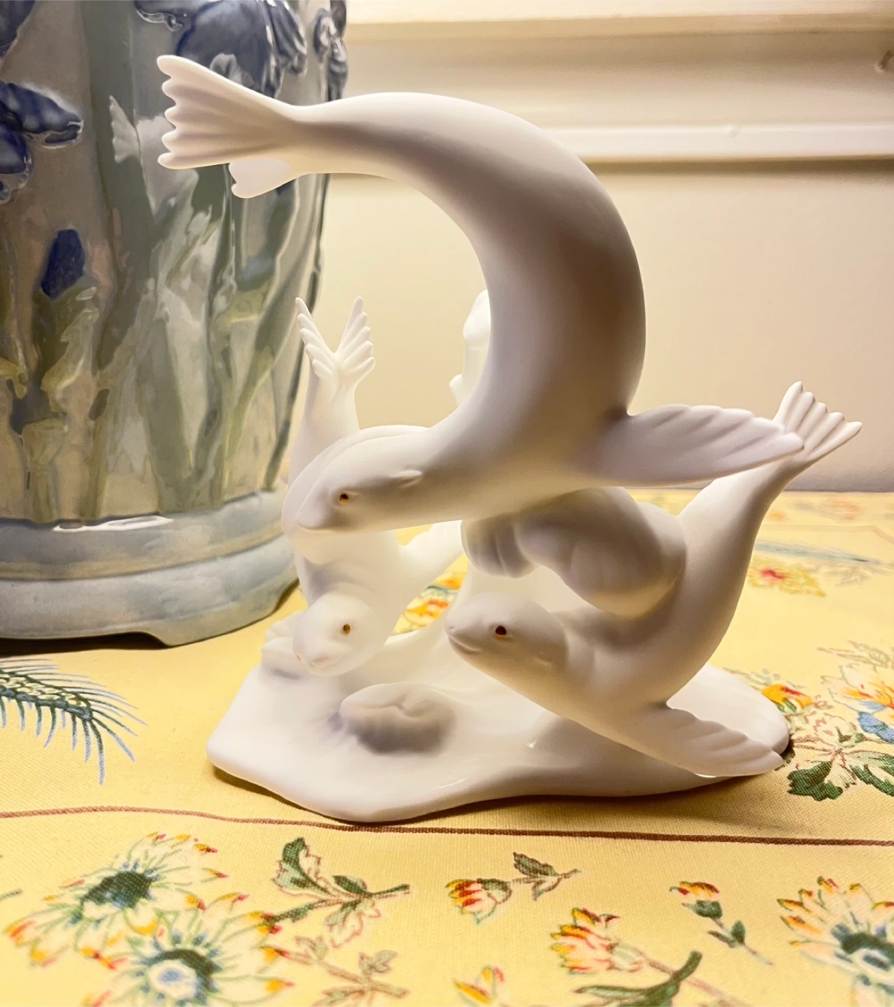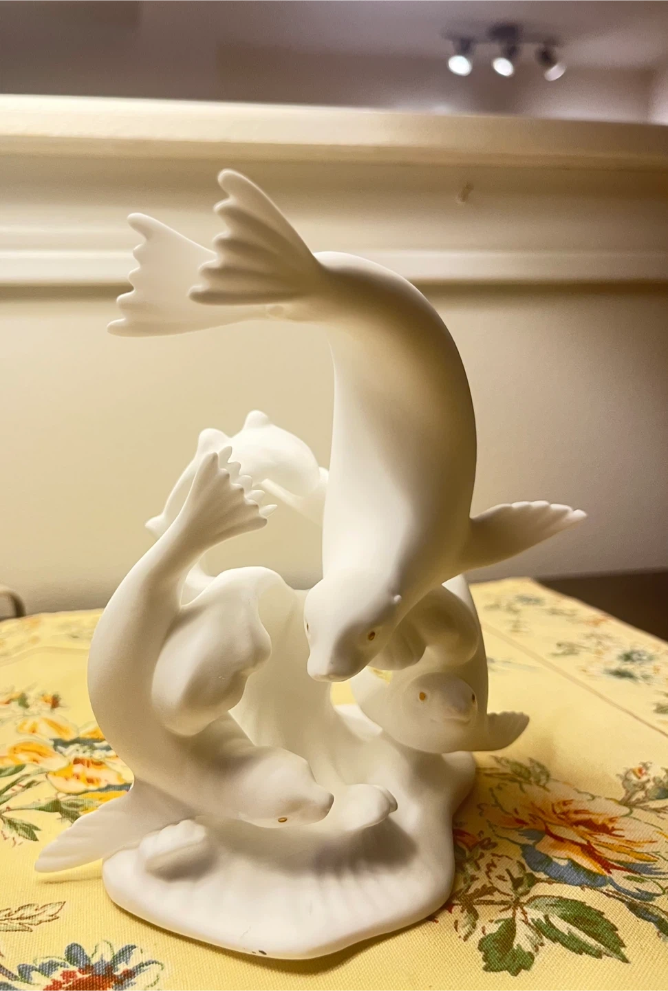 Selling a beautiful vintage porcelain figurine featuring a group of seals. It's a lovely piece for any collector or as a decorative item for your home!