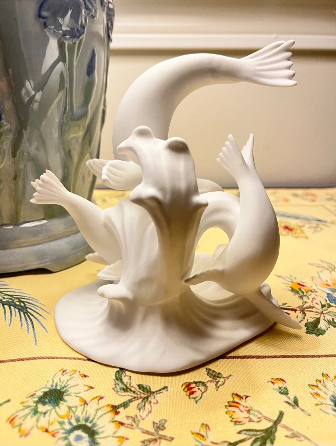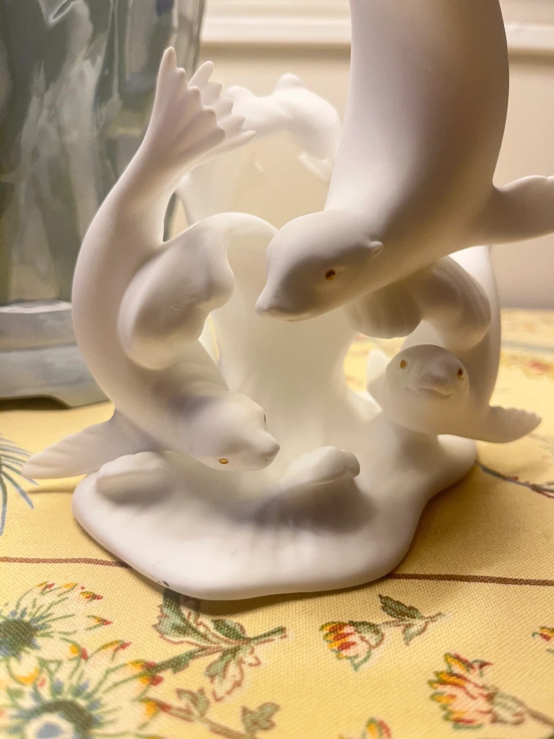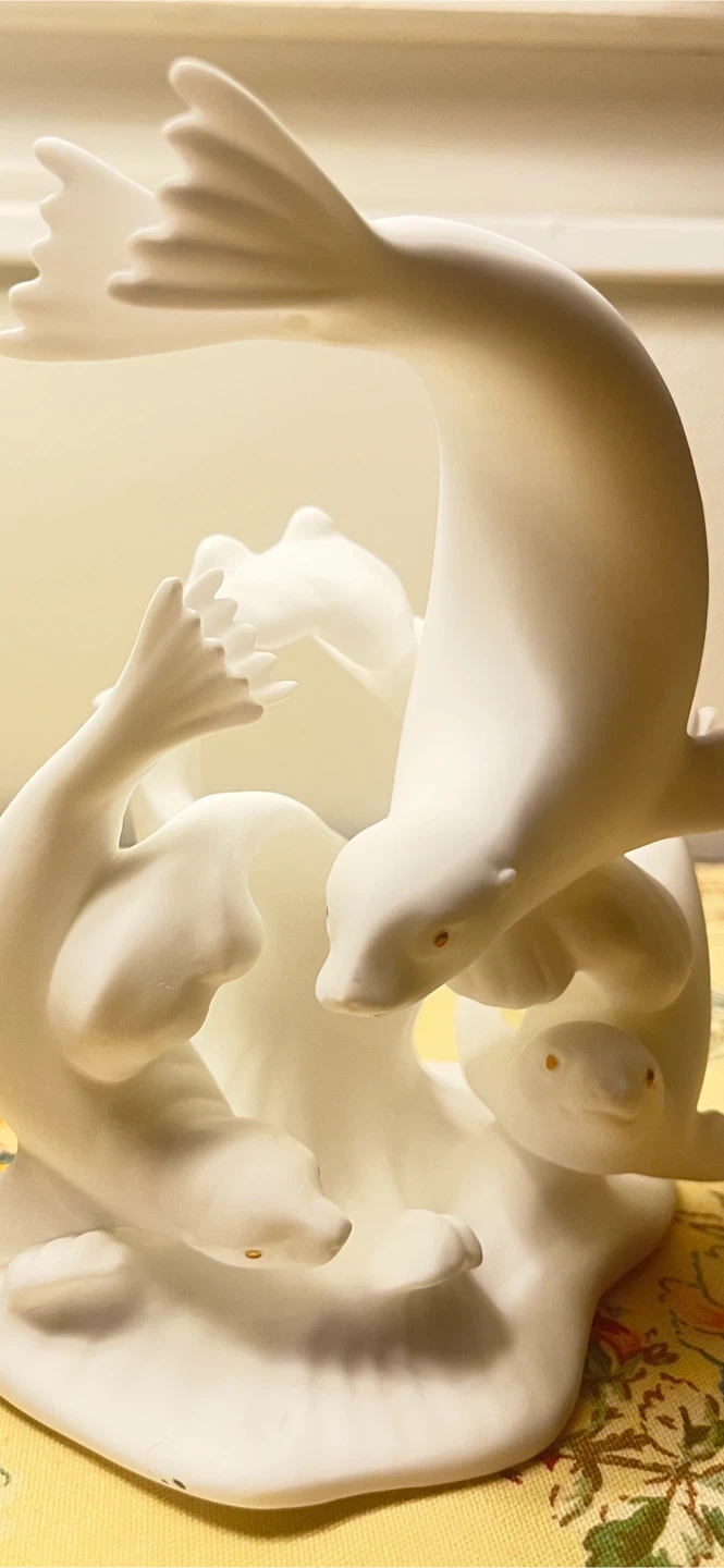 Selling a beautiful vintage porcelain figurine featuring a group of seals. It's a lovely piece for any collector or as a decorative item for your home!