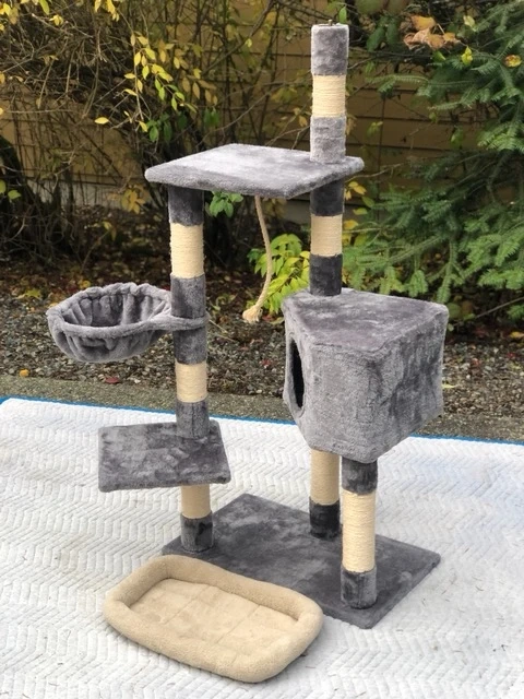 Looking to give your kitty a fun new place to play and relax? This cat tree is in great condition and features multiple levels, scratching posts, and a cozy hideaway. It's perfect for cats of all sizes and will keep them entertained for hours.