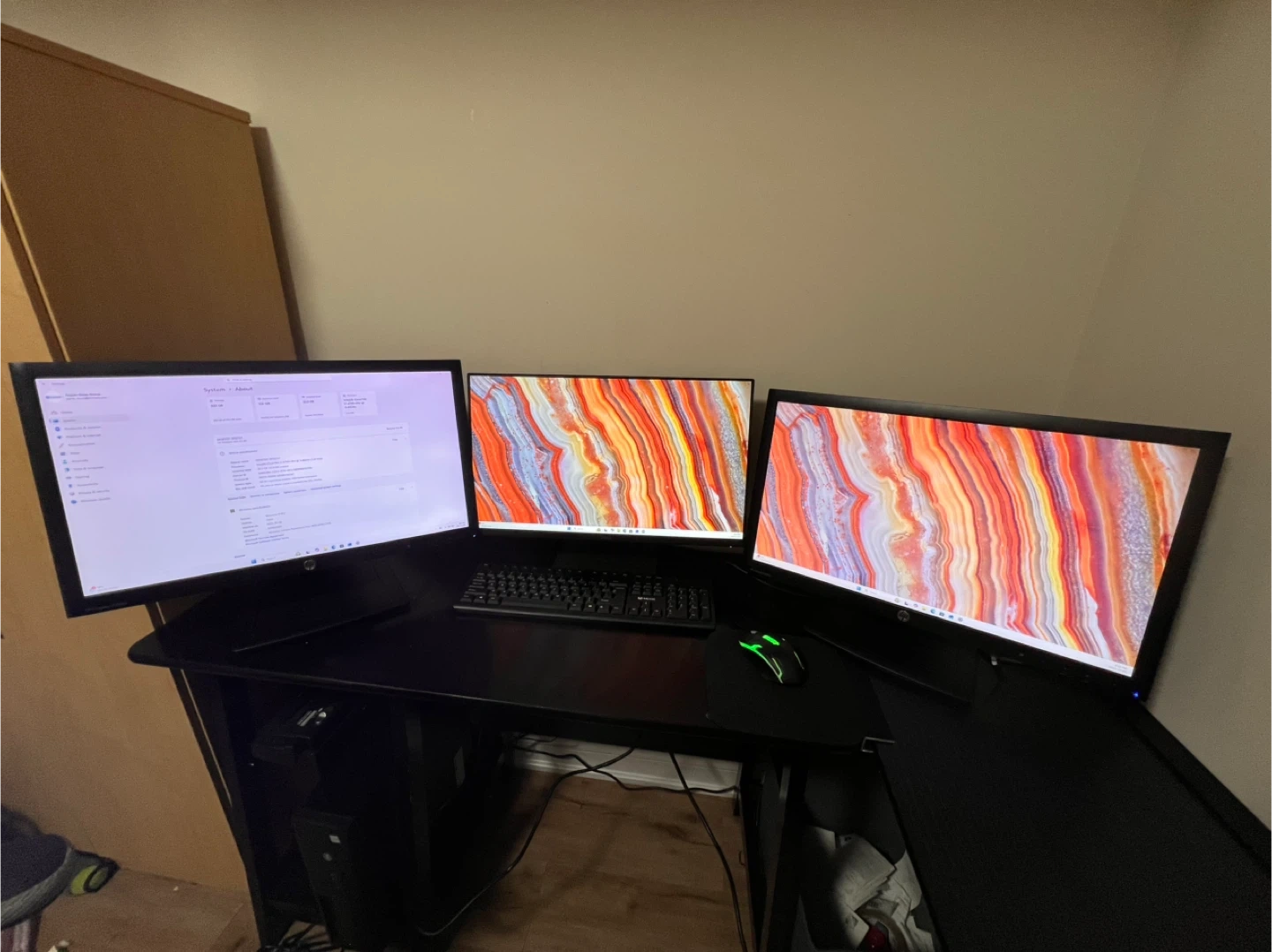 Selling a used HP EliteDesk 800 G2 SFF desktop PC with three monitors.It's in good condition and ready for a new home.Perfect for home or office use!