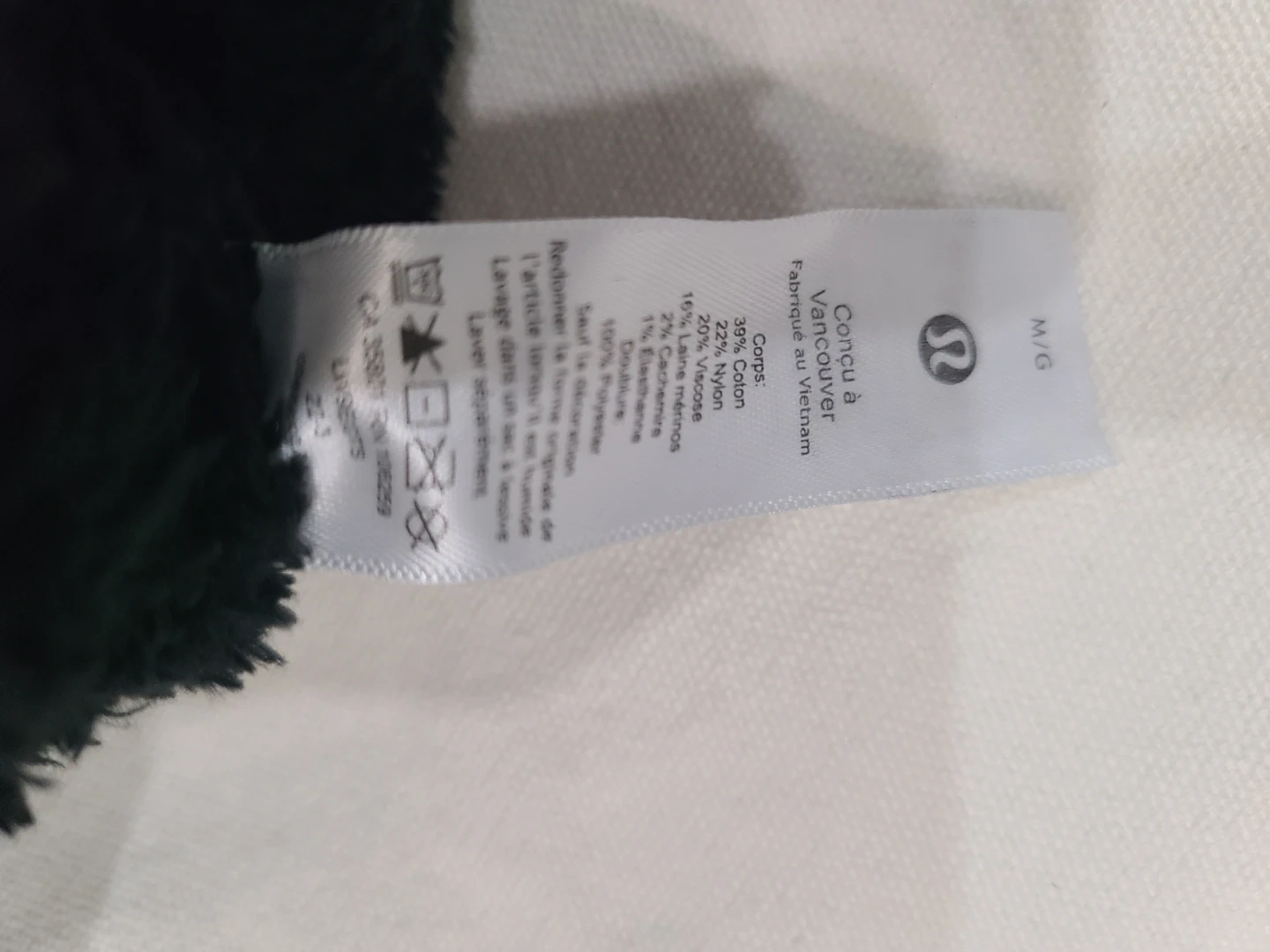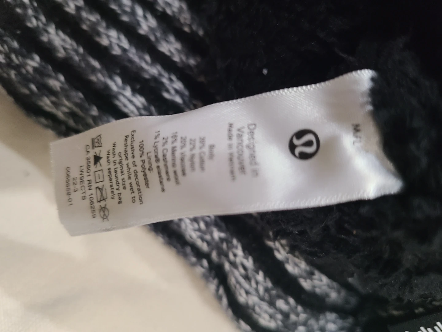Keep your hands cozy with these Lululemon mittens! They're a stylish black and grey colour, and are size M/G. The mittens are made with a blend of materials including wool, nylon, and viscose for warmth and comfort