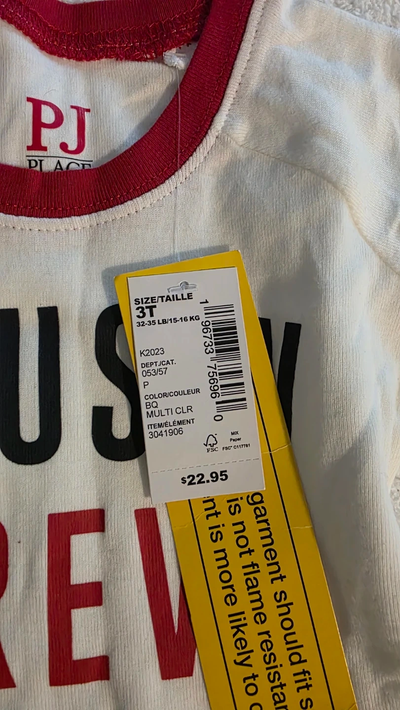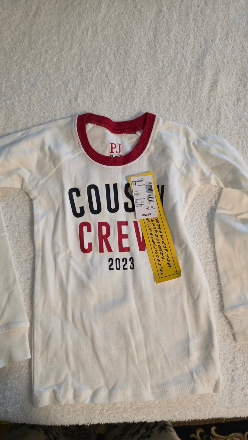 This is a cute PJ Place shirt for a toddler. It's a size 3T and features the words 'Cousin Crew 2023' on the front. Originally bought for $22.95!