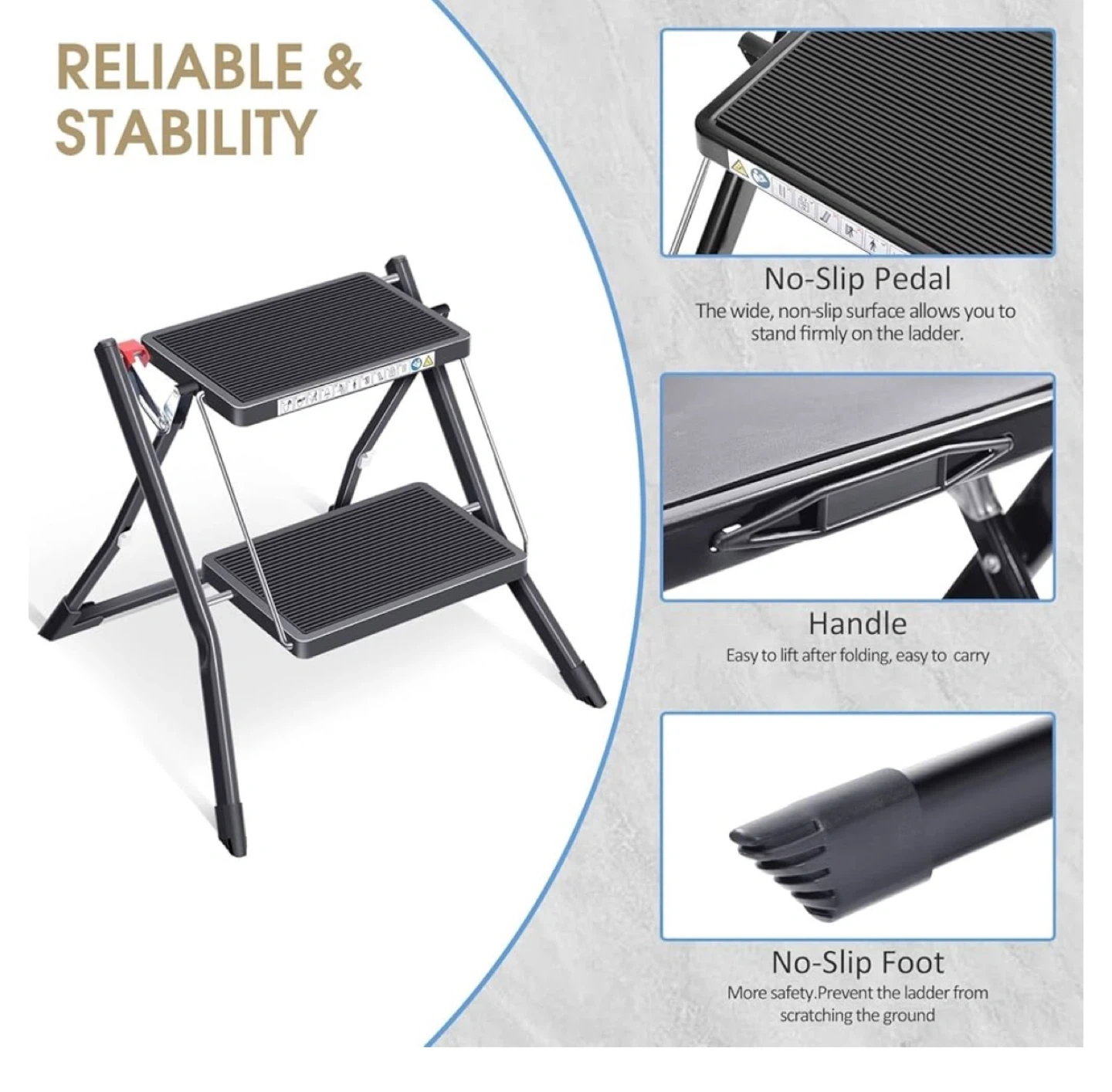 177Looking to sell a handy folding 2-step ladder! It's lightweight and super easy to store, making it perfect for small spaces. The non-slip pedals provide stability, and the handle makes it easy to carry around. It can handle a max loading of 150kg per layer. Dimensions are 30cm x 20cm for the steps, and it stands 44.5cm tall when open.