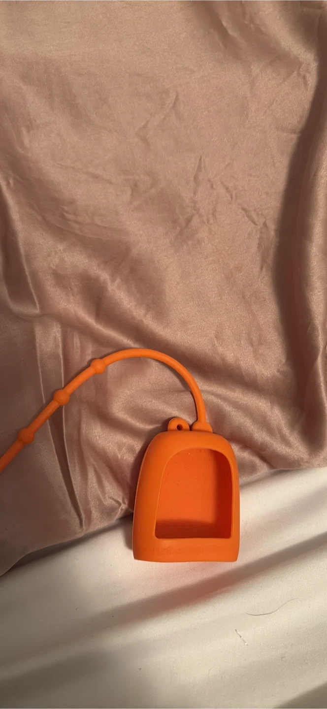 25Here's an orange hand sanitizer holder! It's in great condition and ready to keep your sanitizer close at hand