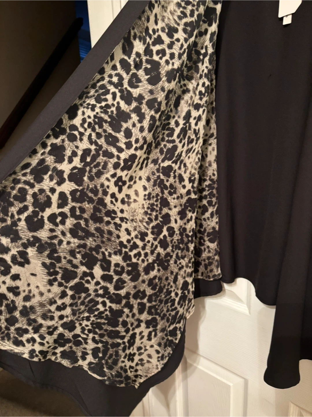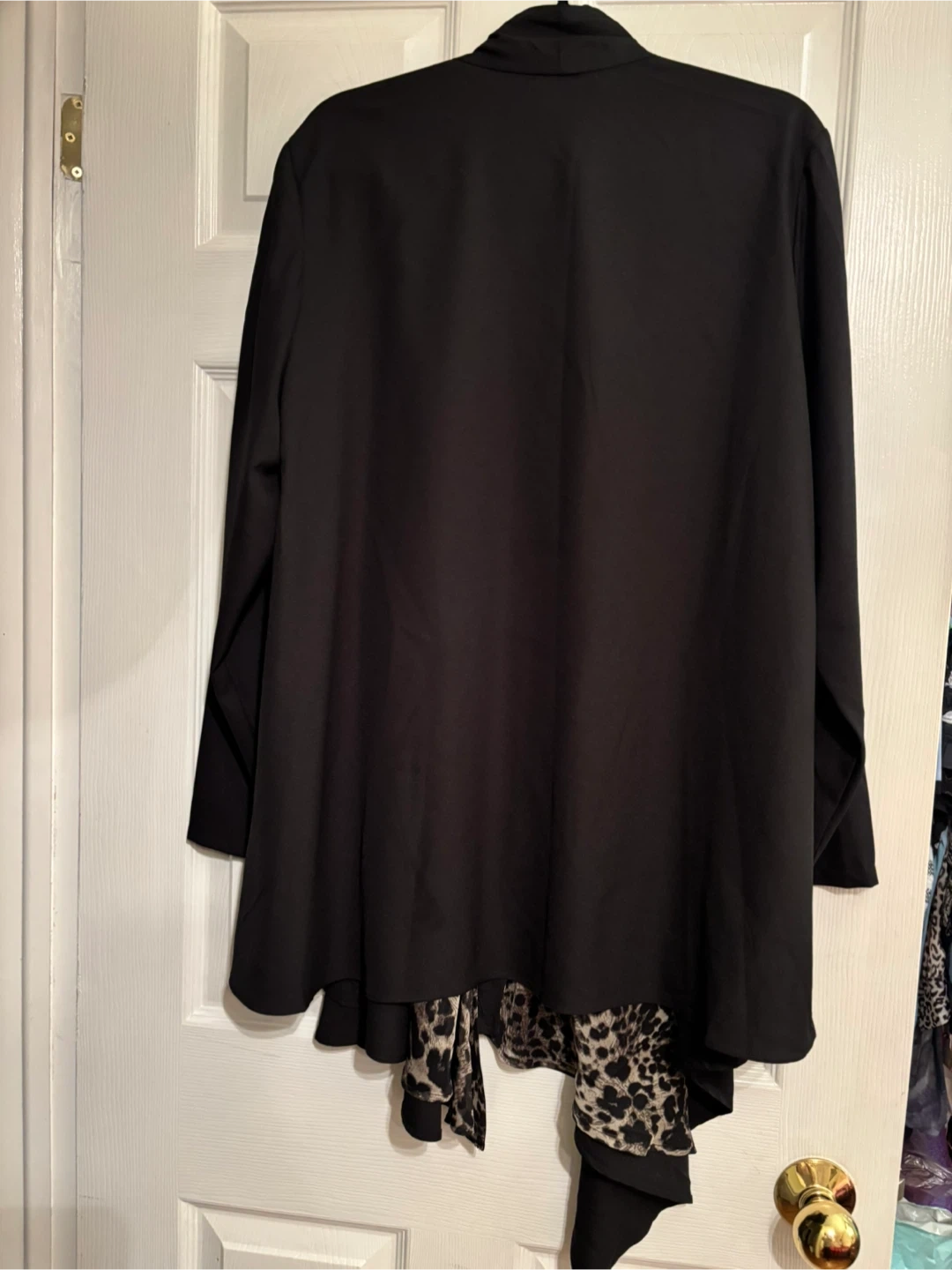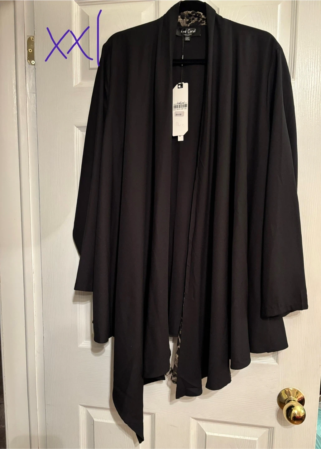 123Here's a stylish black cardigan from RedCoral in size XXL! It features a unique leopard print lining, adding a touch of flair to a classic piece