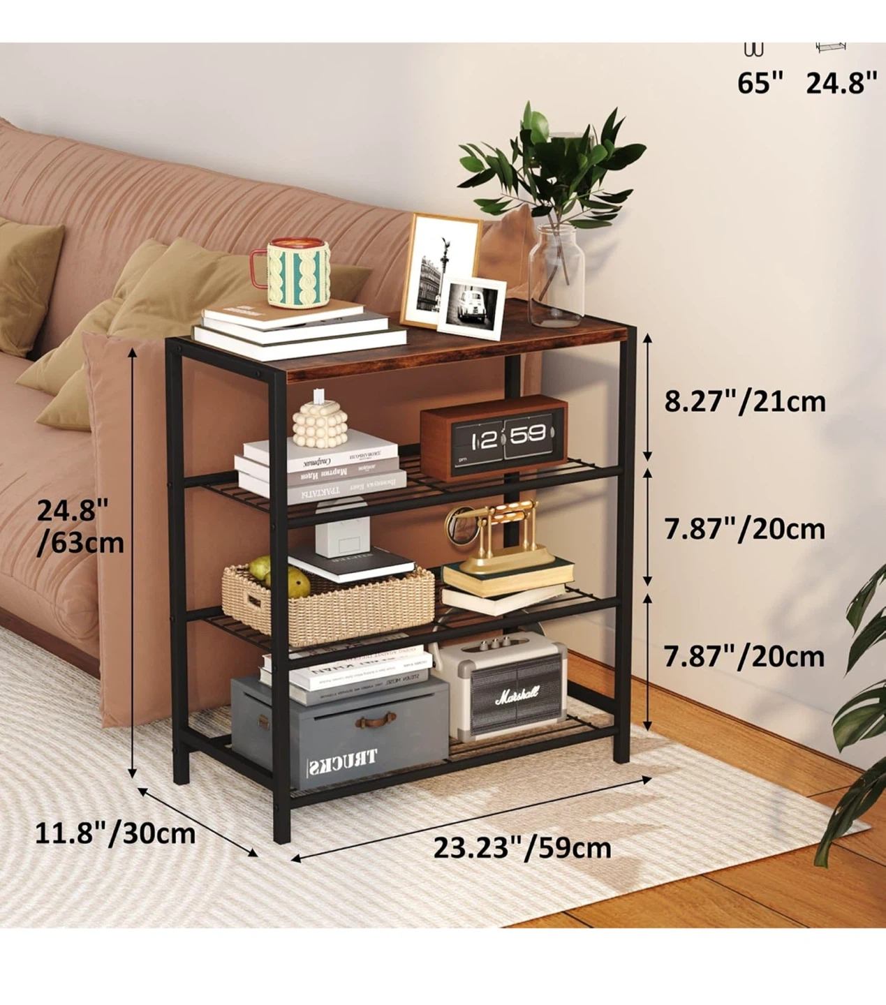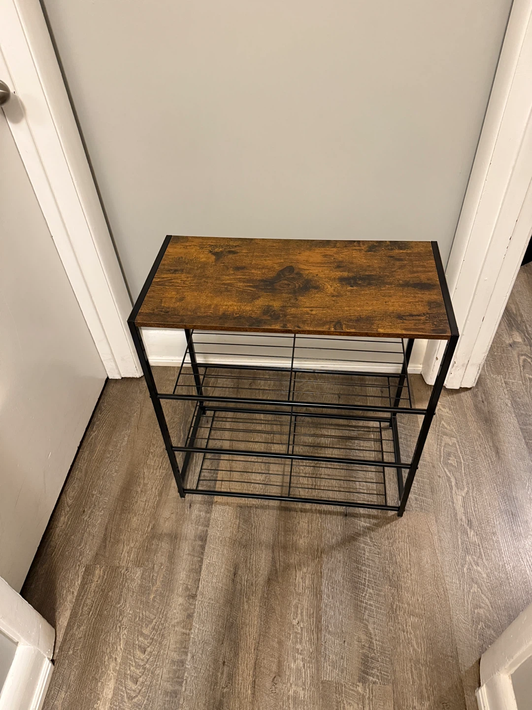 Rustic Brown & Black Metal Shoe Rack/Bench