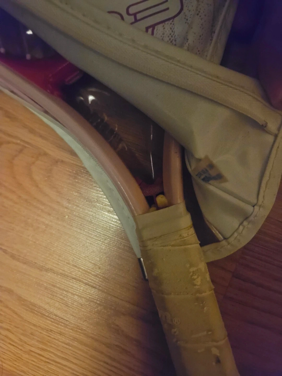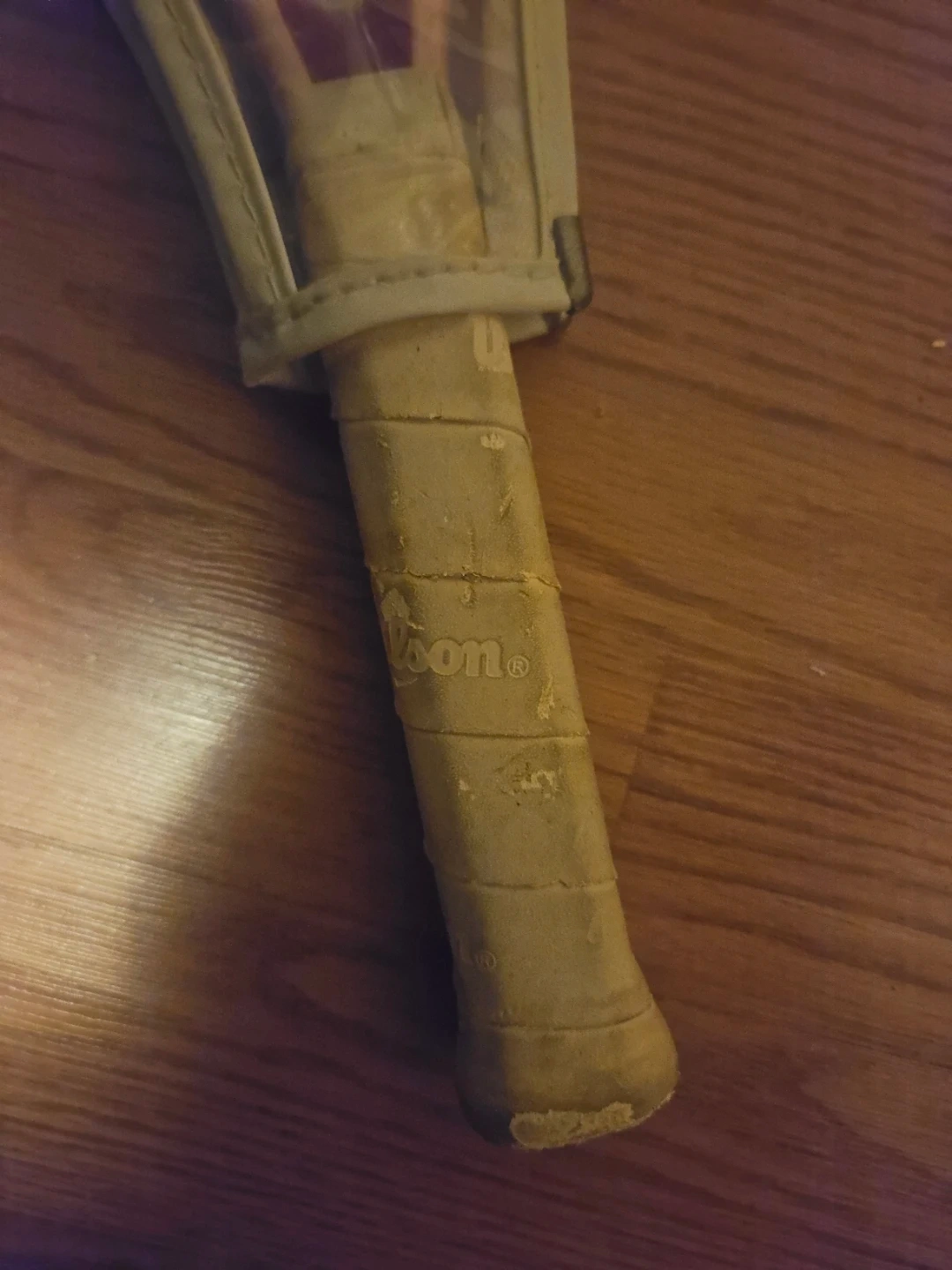 Selling a lot of 3 Wilson Tennis Rackets. The 2 on the right are size 3⅞" and the one on the left is size 3⅝. The blue and the pink Rackets are missing a small plastic piece at the base of the racket. The pink one has ware on the handle and the other 2 handles are still wrapped.