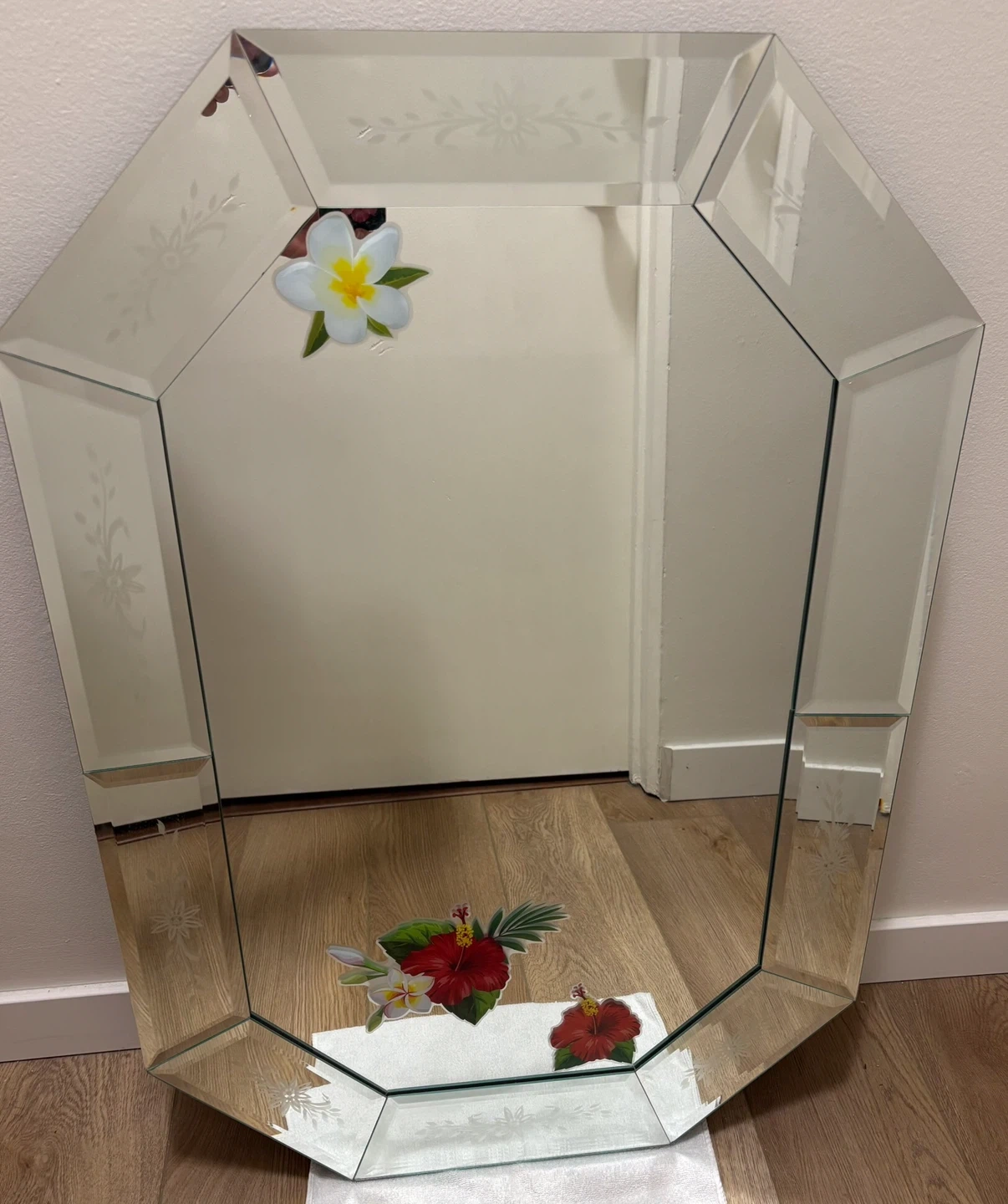 Selling a lovely octagonal wall mirror by C. Walker! It's in good shape and ready to add a touch of elegance to your home. The mirror features a unique etched floral design.