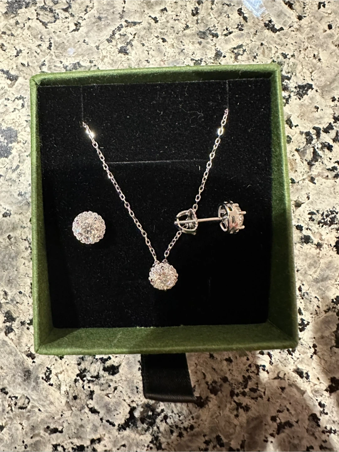 119Selling a lovely moissanite jewelry set! This includes a pair of earrings and a matching necklace, all sparkling beautifully. necklace o.5ct $40 Earring 1ct(0.5*2) $55