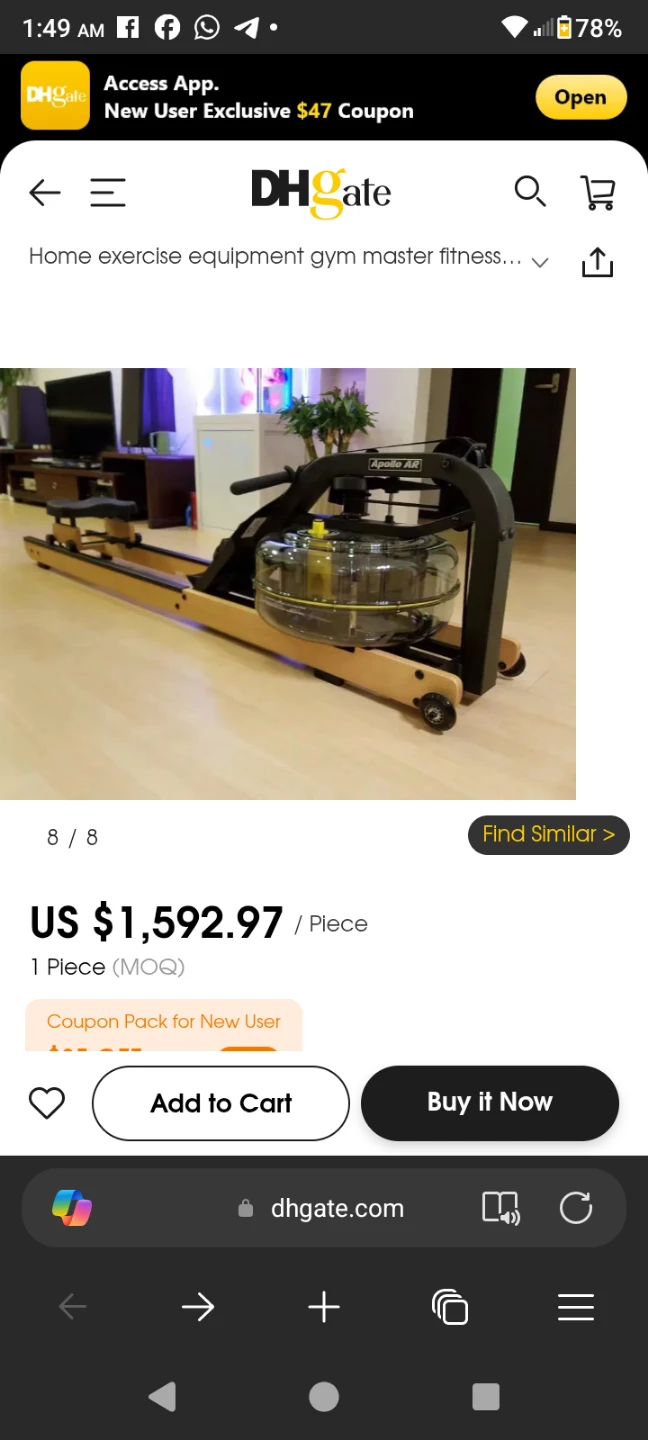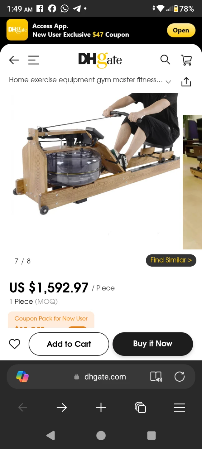 WaterRower A1 Home: Prices range from approximately $960.00 to $999.00.