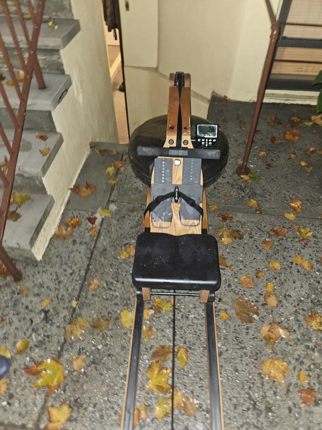 Based on the image, the rowing machine is a WaterRower A1 Home model. The price for this model in the USA can vary depending on the retailer and specific wood used.