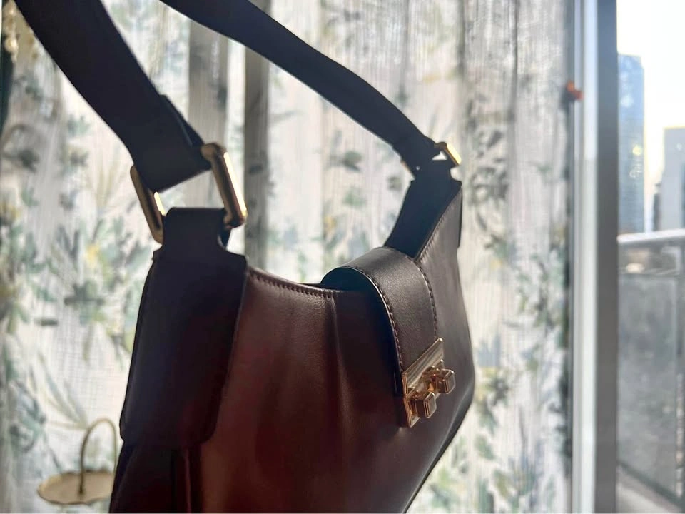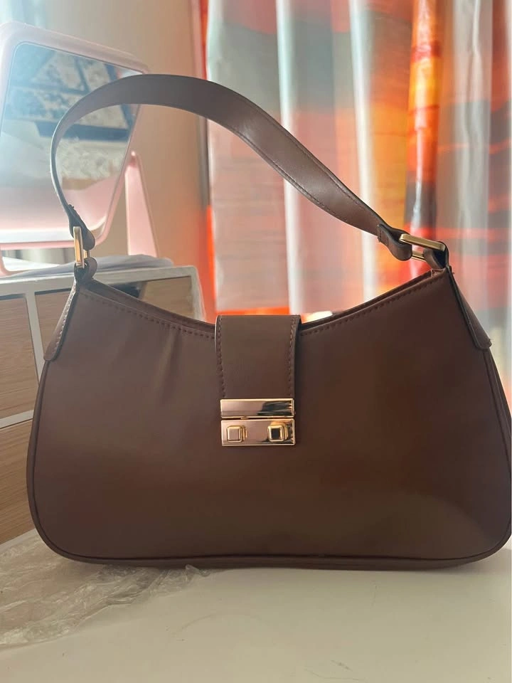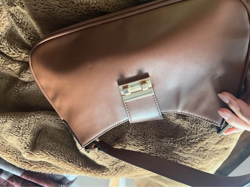 Chic and minimal brown H&M shoulder bag with gold hardware β the perfect everyday accessory! Sleek design, sturdy strap, and just the right size for your essentials. In great condition, gently used.