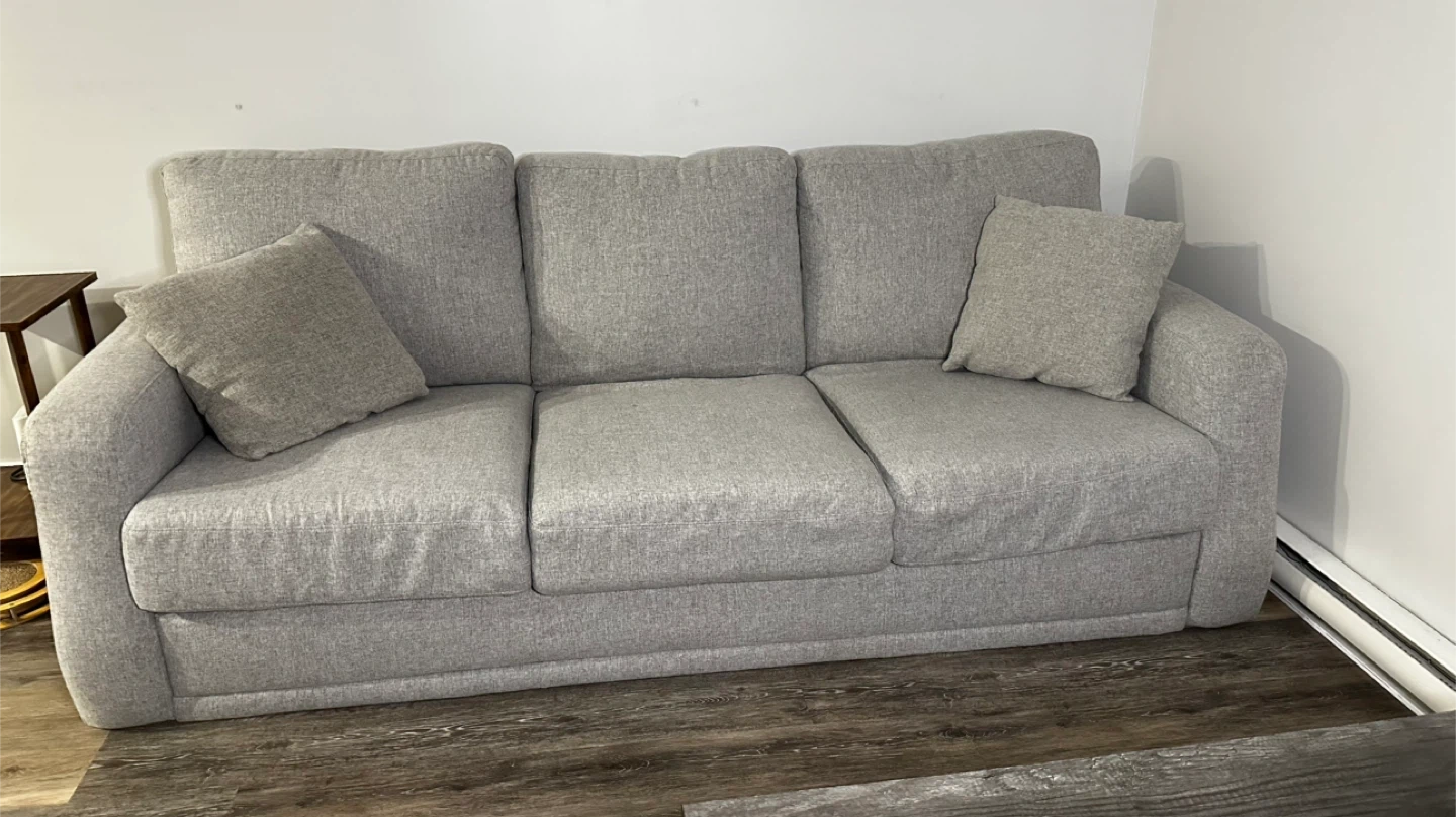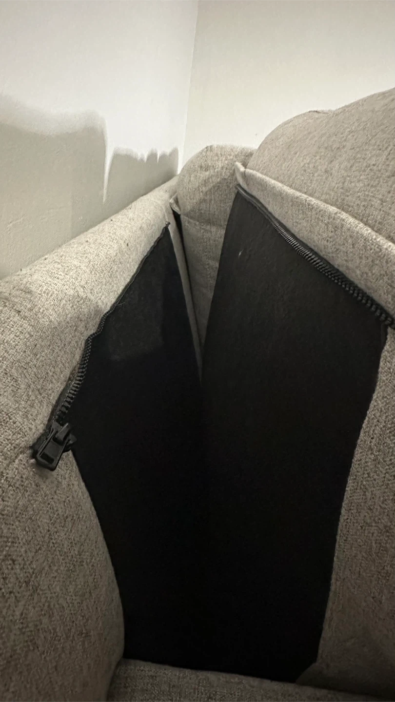 Great condition, just a few small cat scratches – doesn’t affect comfort at all. Also very comfortable to sleep on!