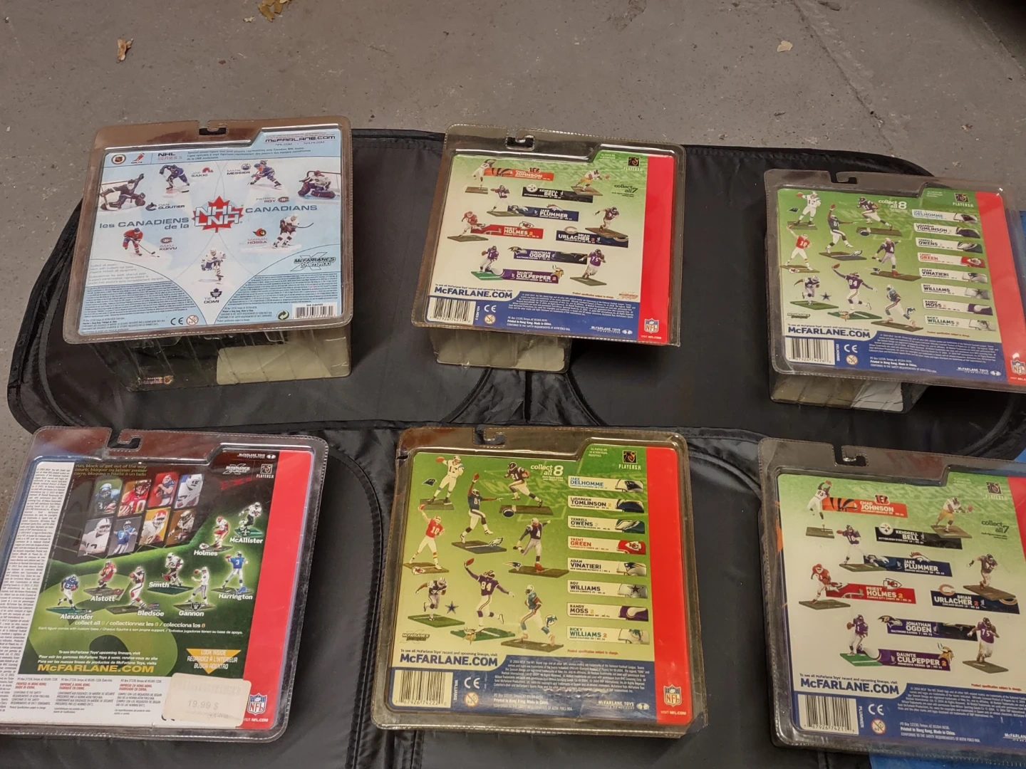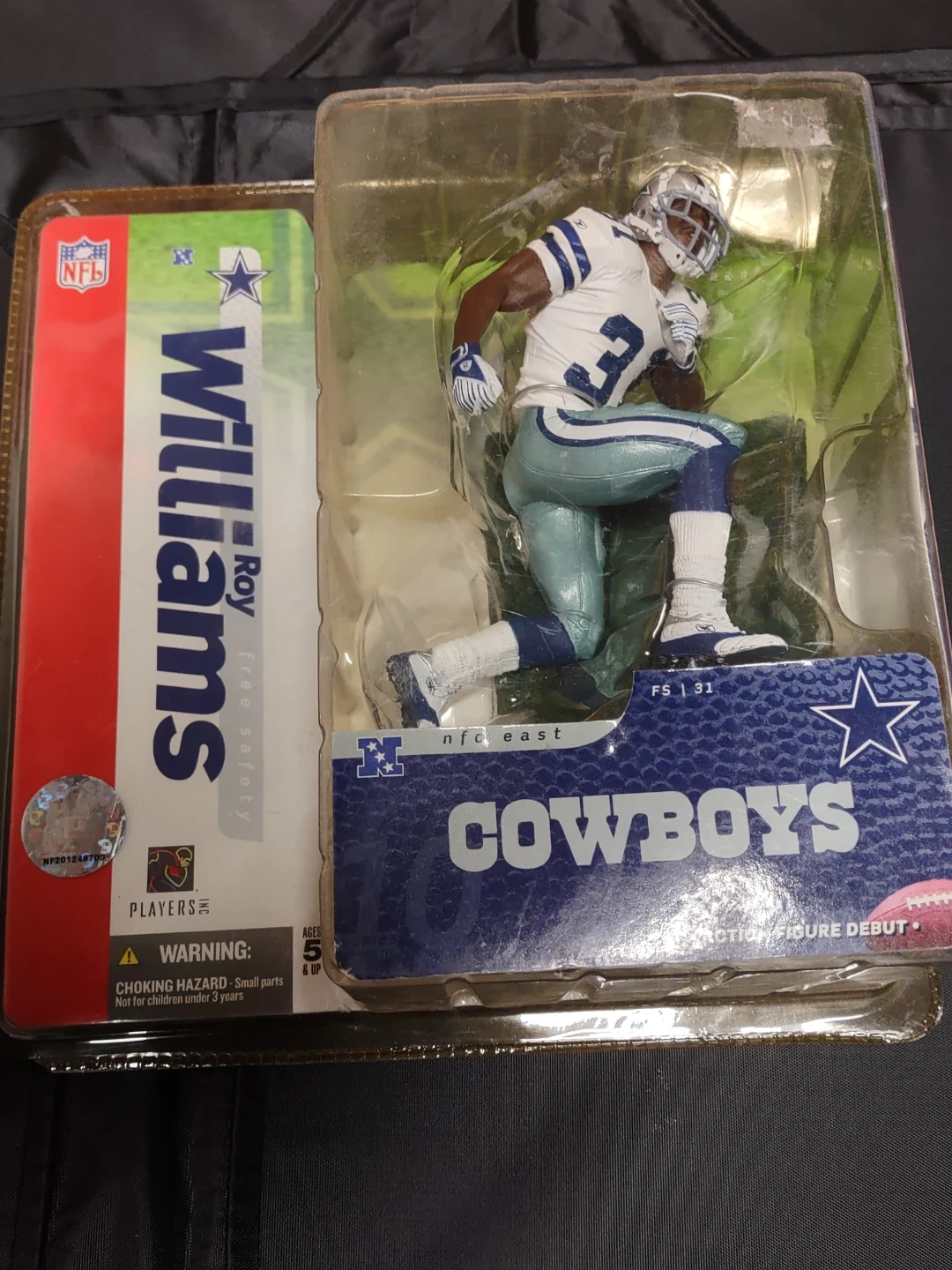 0Selling a collection of NFL action figures: - Jake Plummer (Denver Broncos) - Priest Holmes (Kansas City Chiefs) - Rich Gannon (Oakland Raiders) - Roy Williams (Dallas Cowboys) - Jake Delhomme (Carolina Panthers) All figures are still in their original packaging
