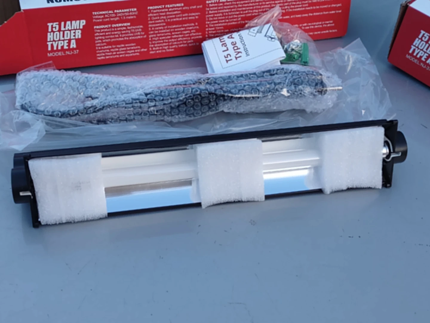0Selling a brand new NOMOY PET T5 Lamp Holder Type A, model NJ-37! This is a fashionable aluminum alloy shell designed for reptile enclosures. It's efficient and energy-saving, providing UVB for your pet's well-being It comes with the original box and includes the T5 Lamp Type A instruction manual