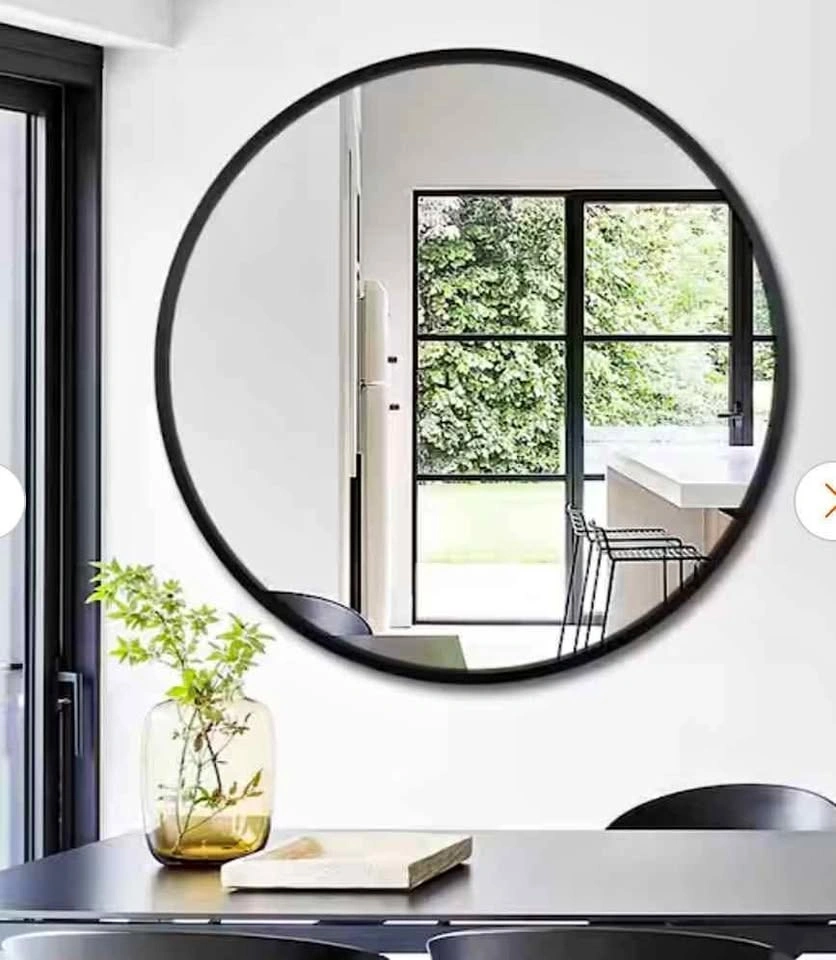 Large Modern and Contemporary Wall Mounting Metal Framed Rounder Mirror, is an eye catching addition to any modern suite, simple, aesthetic styling. Hang this gorgeous mirror above or behind a dresser, vanity, or other large furniture,give your industrial decor an eye-catching upgrade. Also this decor approach will open up your bedroom, dining room, or any location you would like to enlarge and enhance with elegant design.