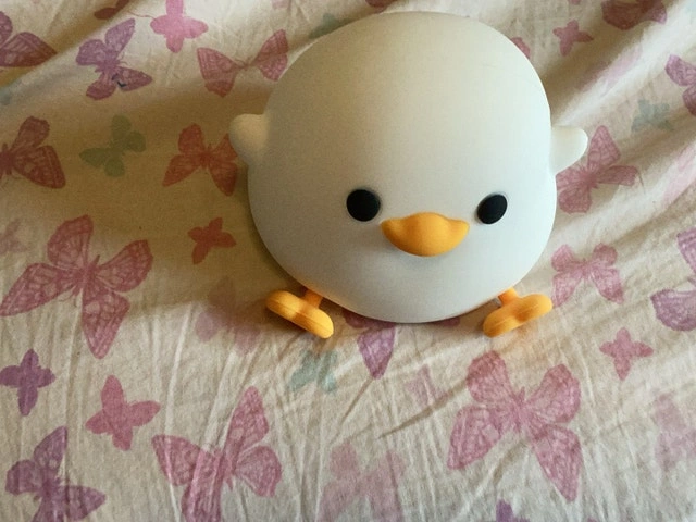 This adorable duck night light is in used, but great condition and emits a soft, comforting glow, perfect for a child's bedroom or anyone who loves cute decor. It's made of a soft, squishy material that's safe for kids and features a simple on/off switch.