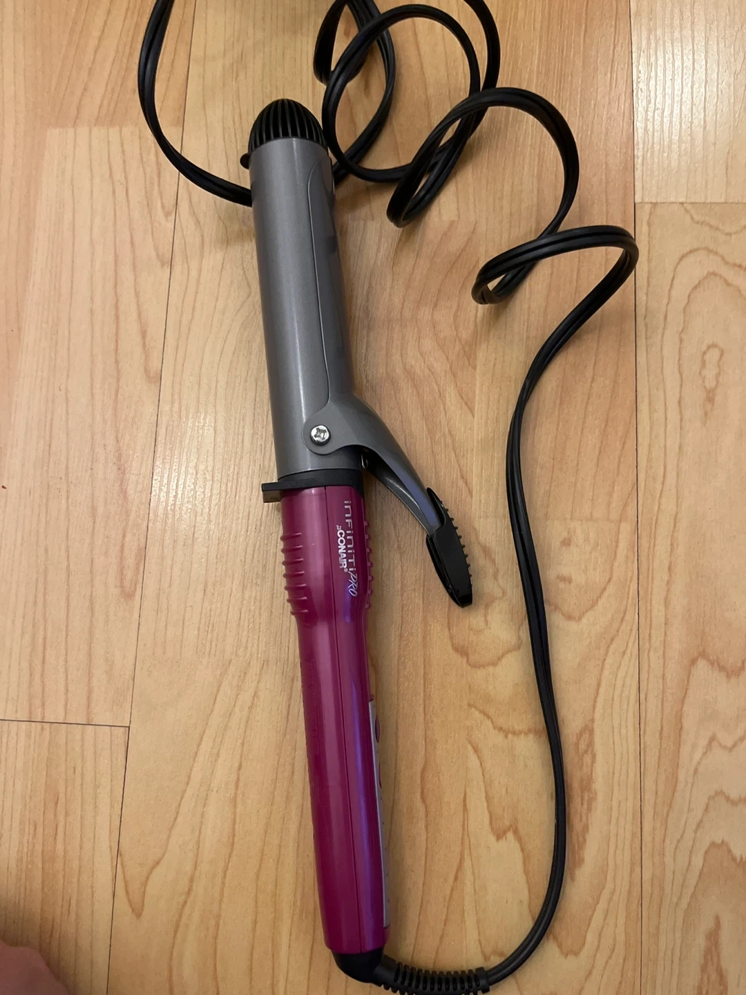 This is a Conair InfinitiPRO curling iron. It's a styling tool designed for creating curls. The curling iron has a clamp and a swivel cord for ease of use.