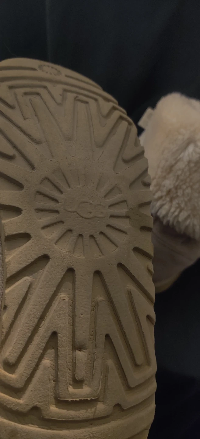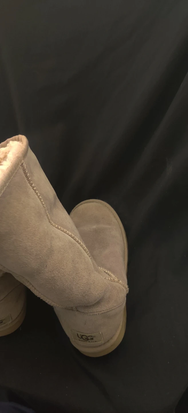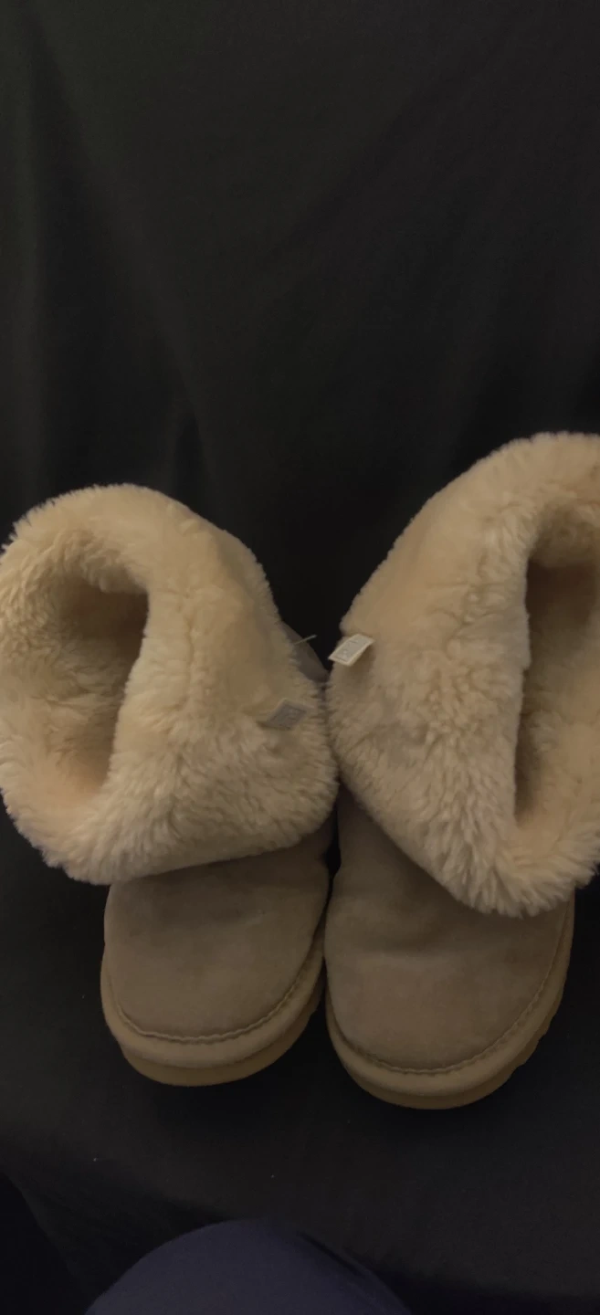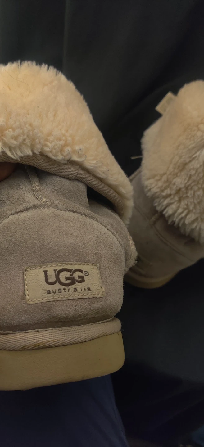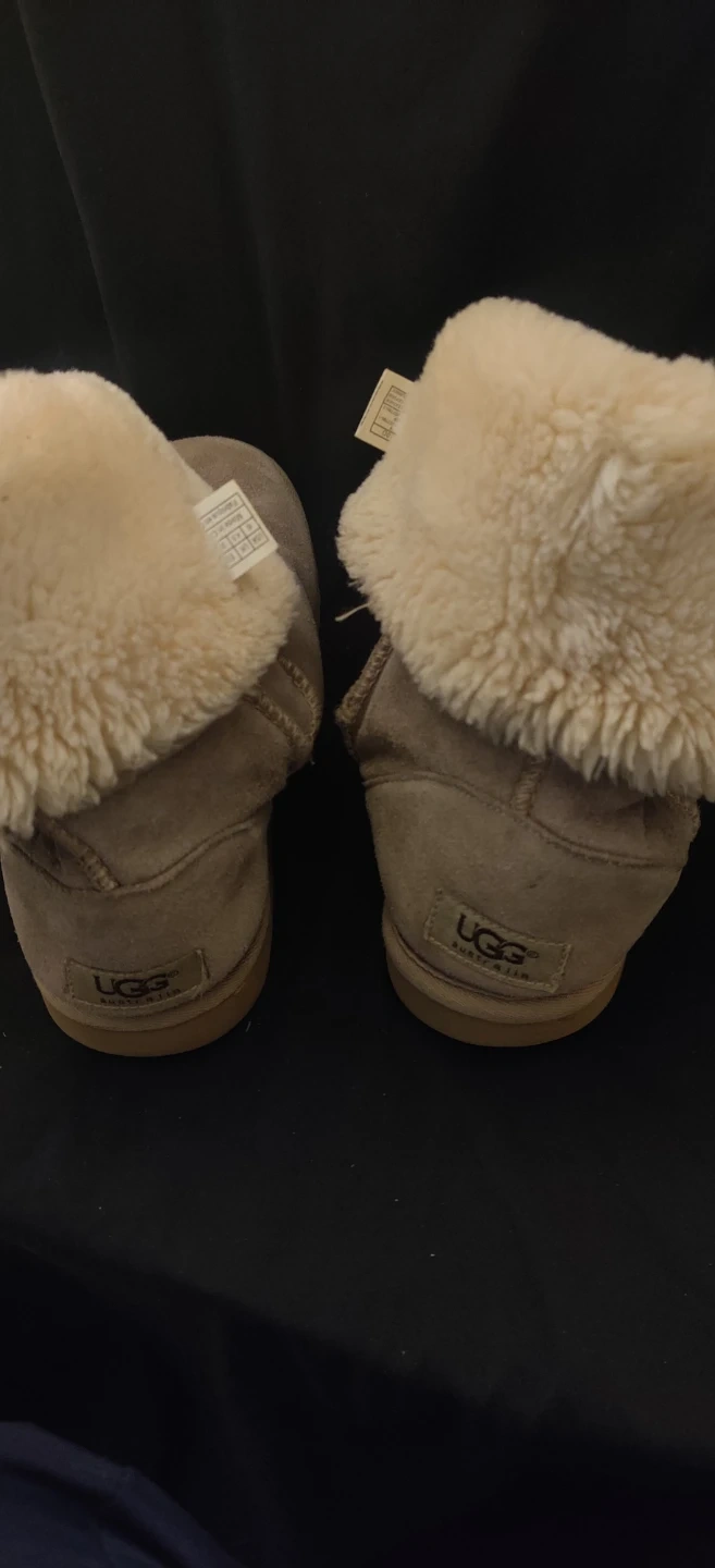 These UGG Australia boots are made with genuine sheepskin and leather. They feature a rubber sole. Perfect for keeping your feet warm and cozy!. Boots are pre-owned and shows some signs of wear