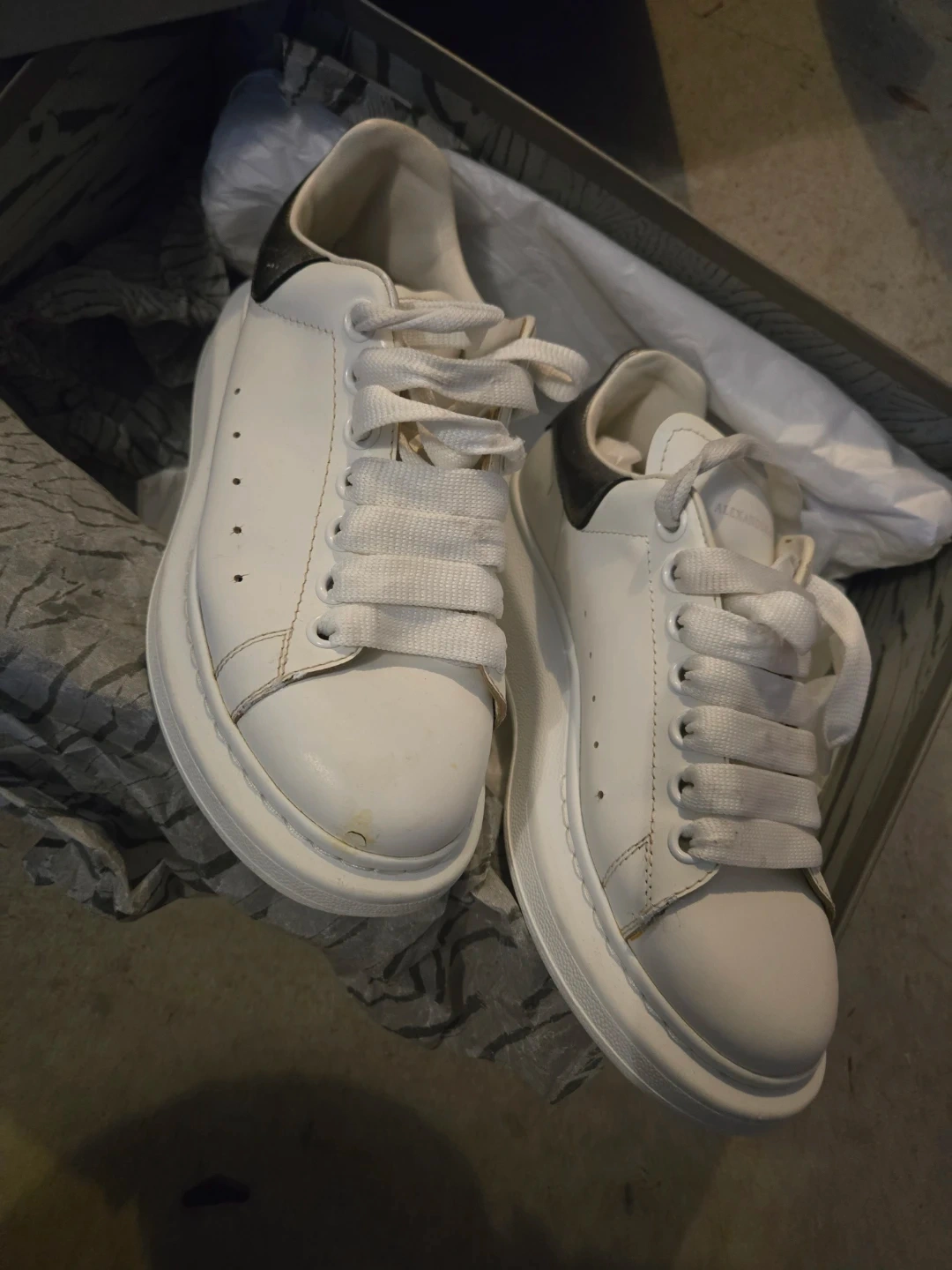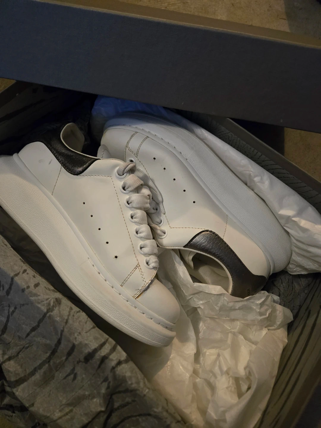 Alexander McQueen Larry sneakers in white and black pearl. Calfskin leather. Includes original box. Size 37+.