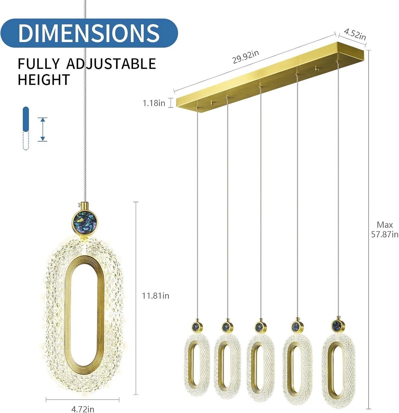 - Each pendant is 11.81in in length and 4.72in in width