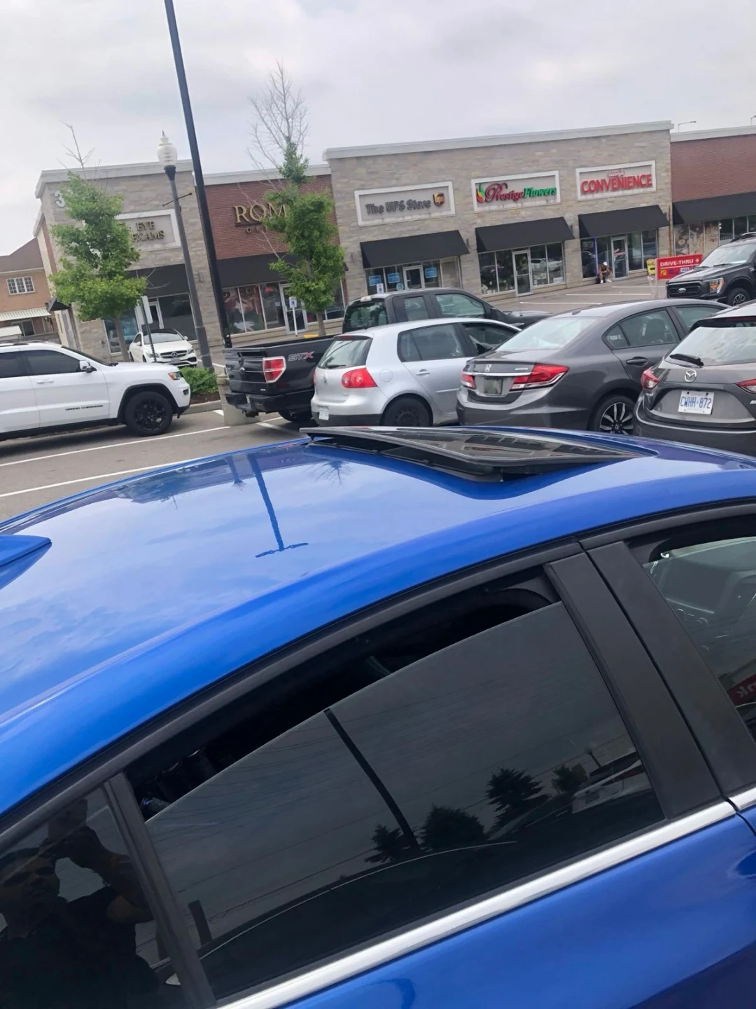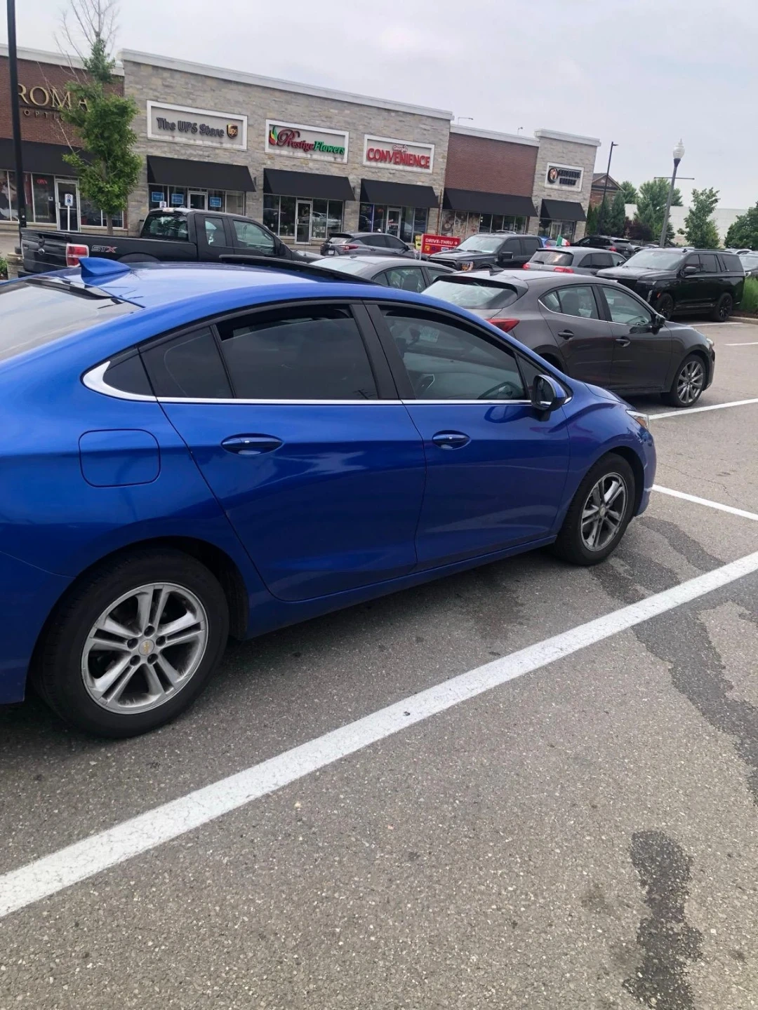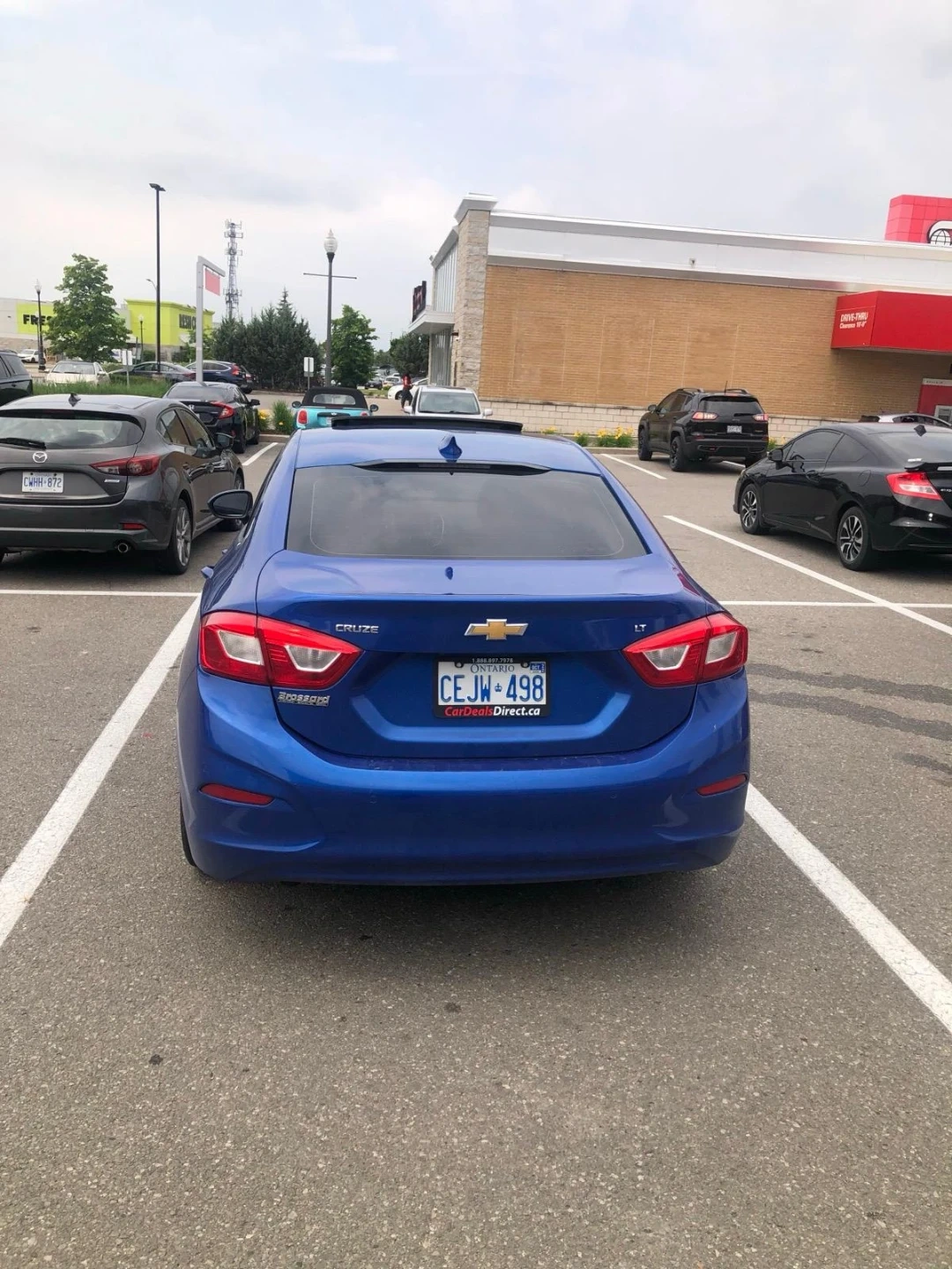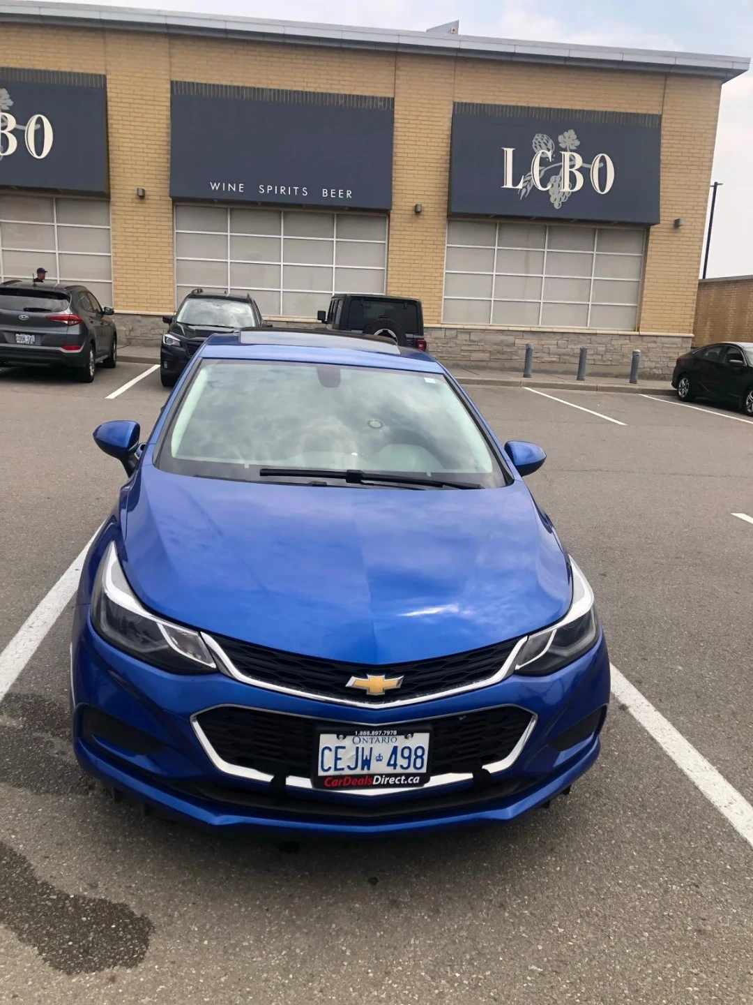 This is a blue Chevrolet Cruze LT. It's a four-door sedan. Car has tinted windows and a sunroof.