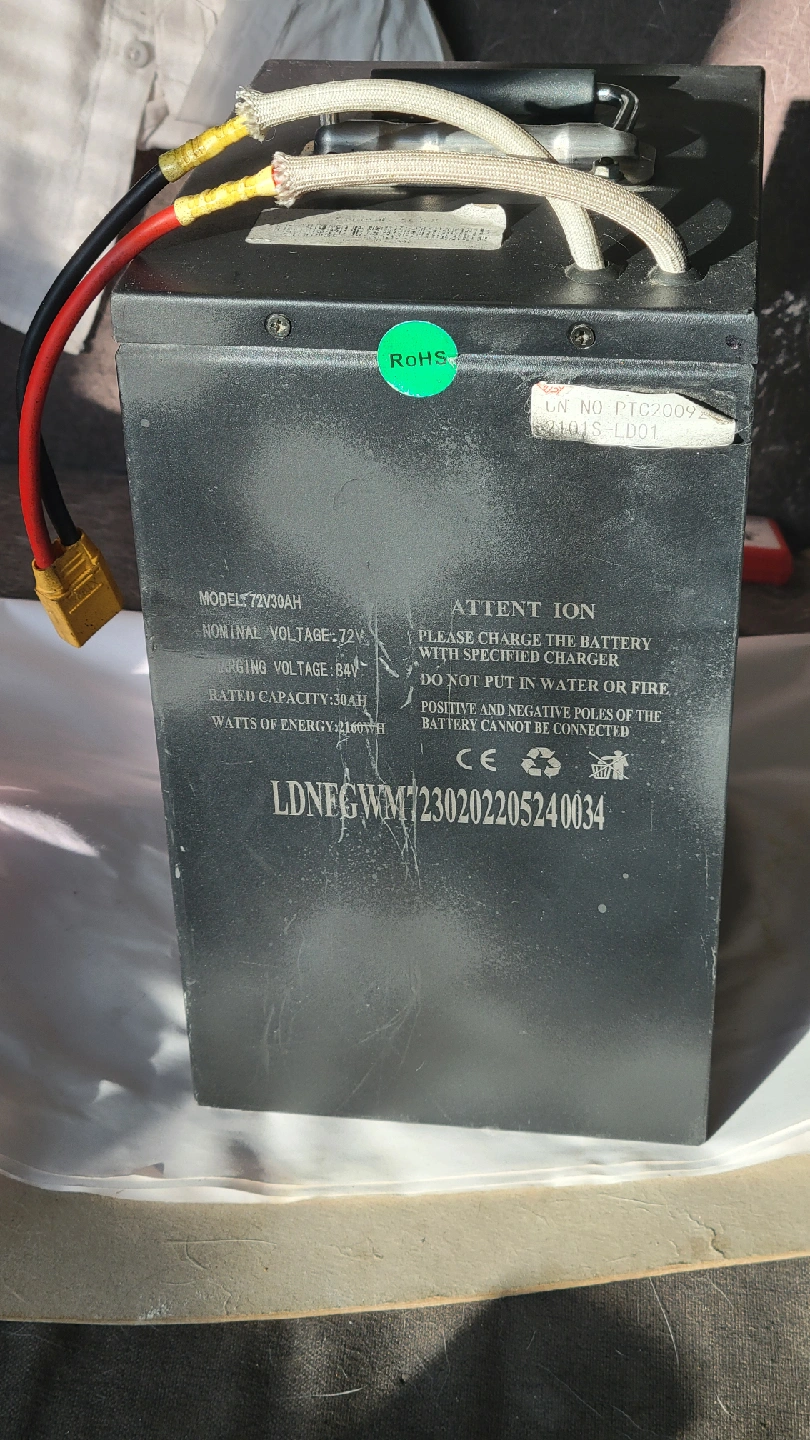 Selling a 72V 30AH Emmo lithium battery. It has a nominal voltage of 72V and a charging voltage of 84V. The rated capacity is 30AH, with watts of energy at 2160WH. Comes with 3ah charger. Metal case with handle. Good condition, never totally discharged, been taken care of. Charges to 83.9-84v depending on my voltmeter. ebike 72v lithium