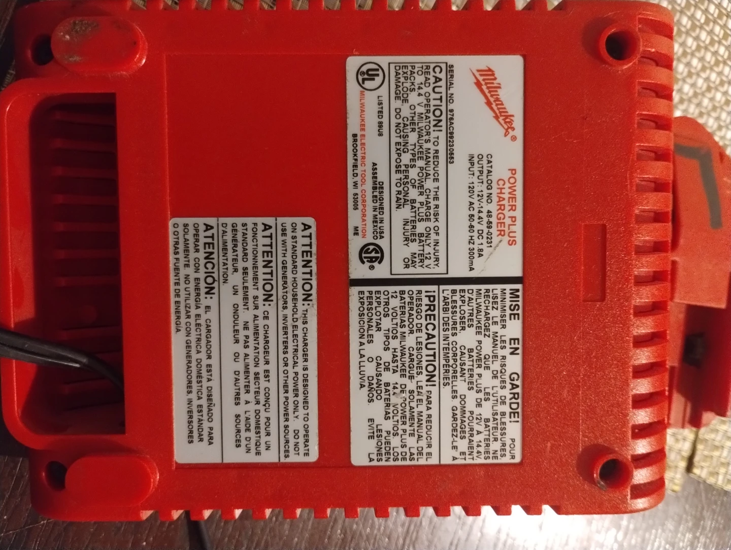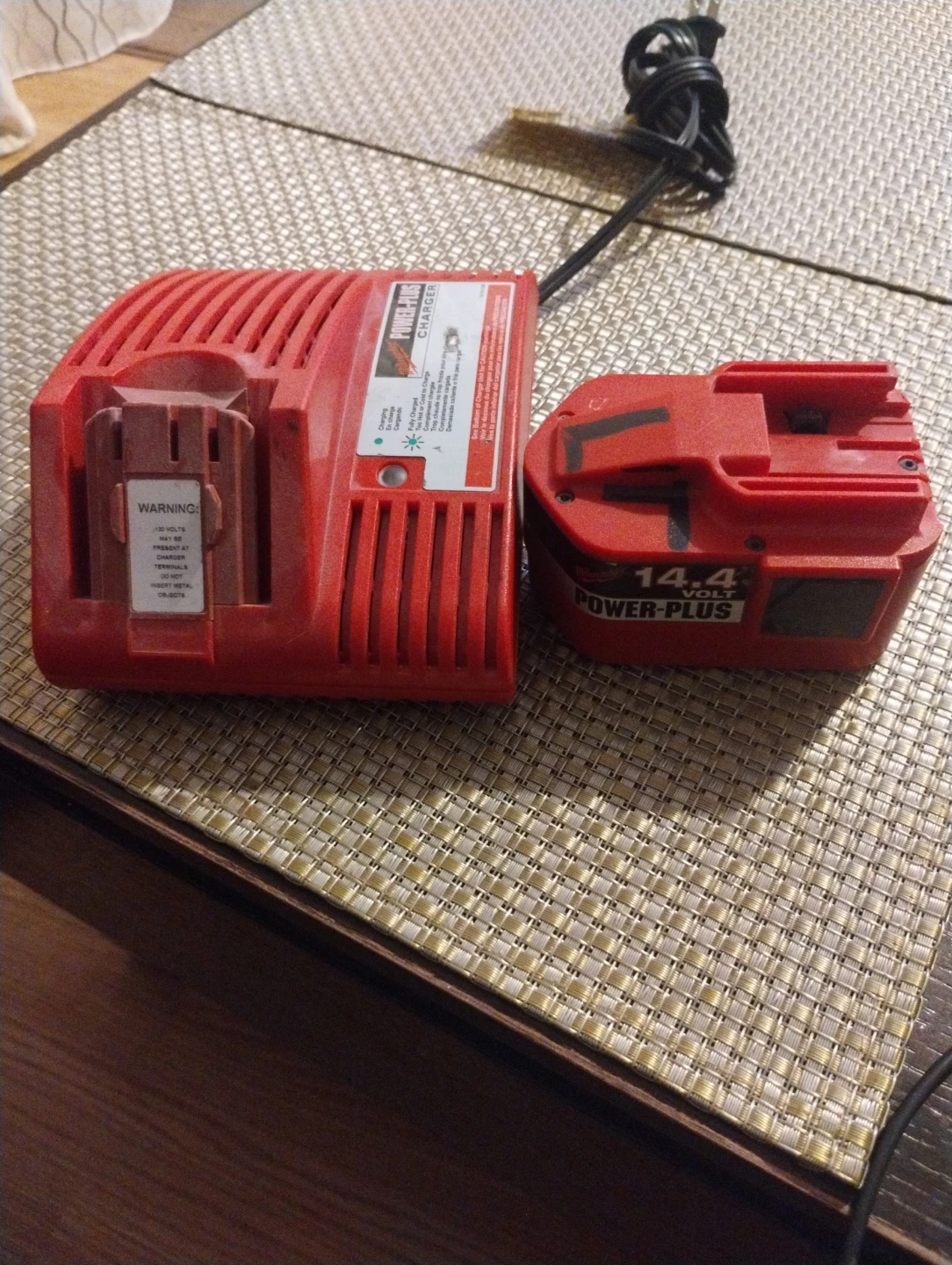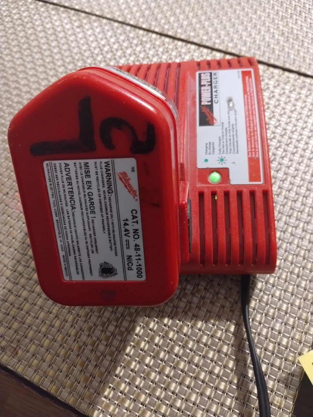 Selling a Milwaukee Power-Plus battery charger. It's a 14.4V charger, model number 48-11-1000. Works with NiCd batteries. Ready to go for your Milwaukee power tools!