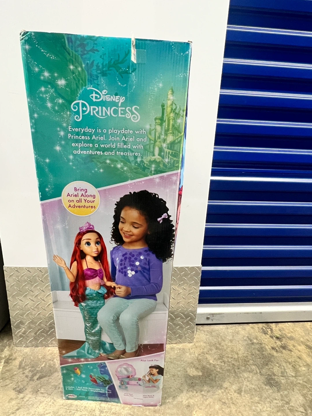 Selling a Disney Princess Playdate Ariel doll! The box includes 1 doll with a removable top and skirt, 1 doll tiara, and 1 Dinglehopper brush. Perfect for any Disney fan!