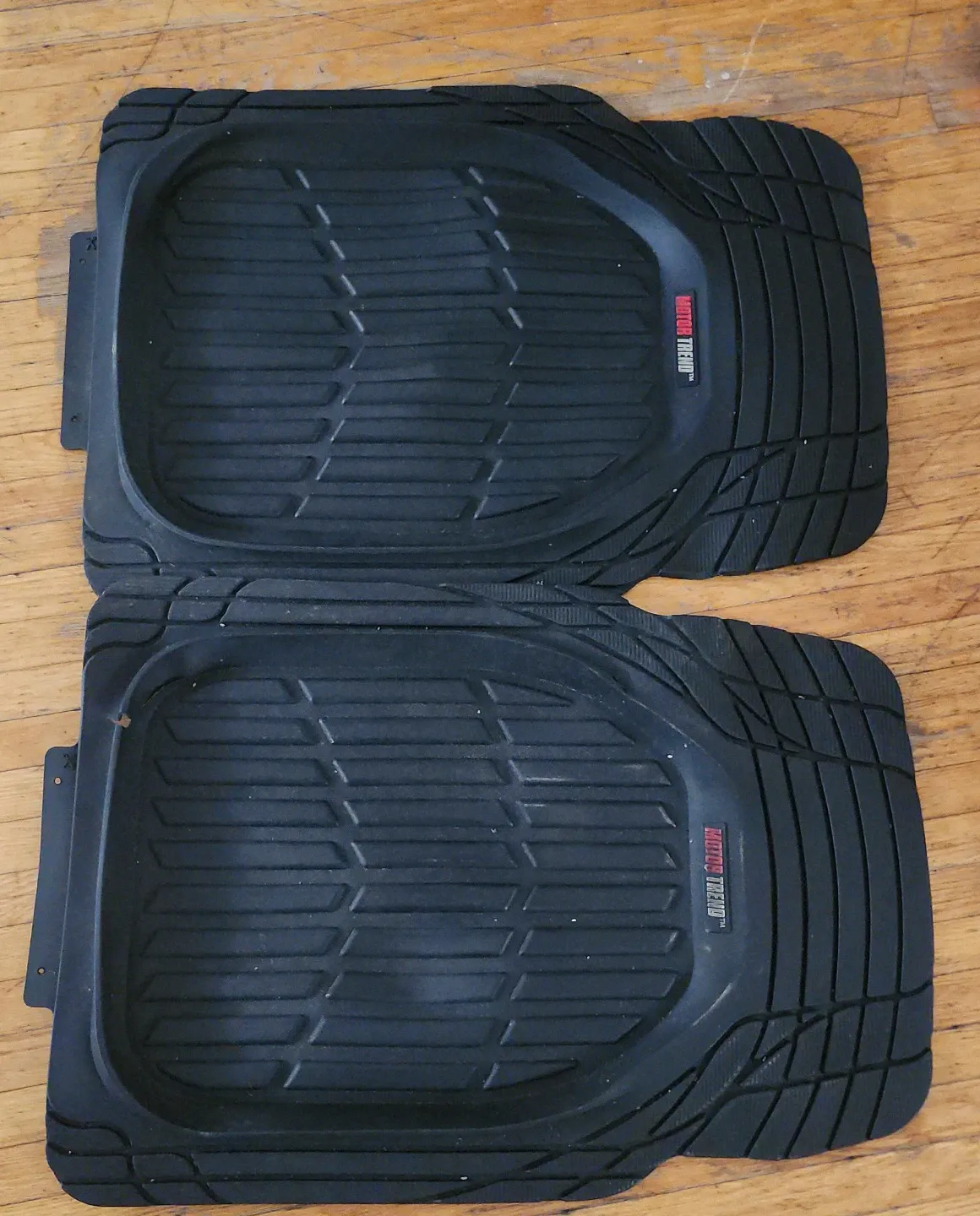 Selling a pair of Motor Trend FlexTough Contour floor mats in black. They're designed to be durable and protect your car's interior from dirt and spills