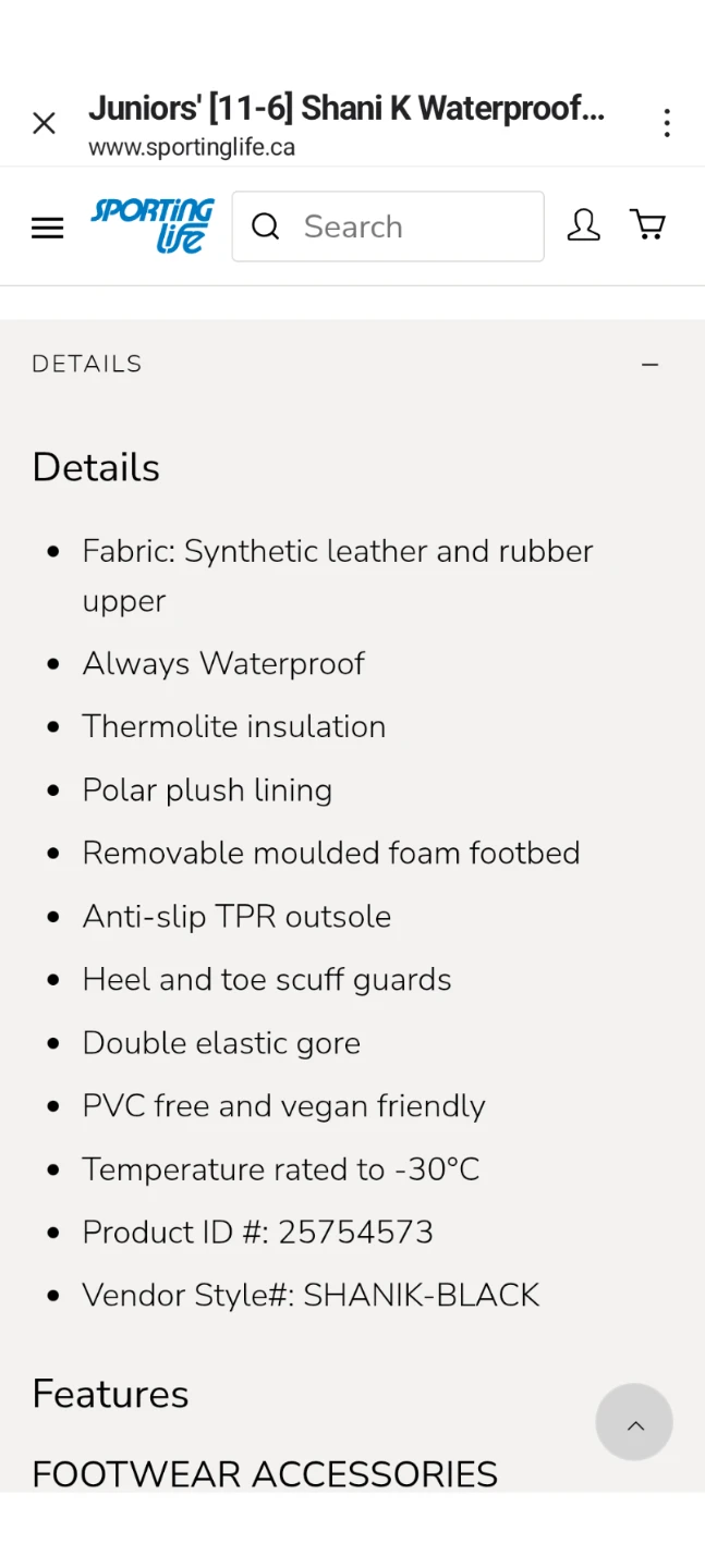 The kids' Cougar Shani K Waterproof Boot is a pull-on synthetic leather and rubber boot. It features a rounded toe, double elastic gore closure and a thermoplastic rubber outsole. Finished with reinforced heel and toe scuff guards. They got me through one season before I got a pair that actually fit. In really good condition. I just cleaned them up and they're looking for a good home for either yourself or a young one in your life. Once sold it will be available for pick up near Dufferin and Eglinton https://www.sportinglife.ca/en-CA/shoes/kids/winter-boots/juniors-11-6-shani-k-waterproof-boot/25754573_000_500.html?gad_source=1&gad_campaignid=17095981817&gclid=CjwKCAiAt8bIBhBpEiwAzH1w6YMYIXSSG7EQqTHCXyLdTZapMoJkqGZc3Kurf2mpoI22vGx79FrrTxoCDjYQAvD_BwE
