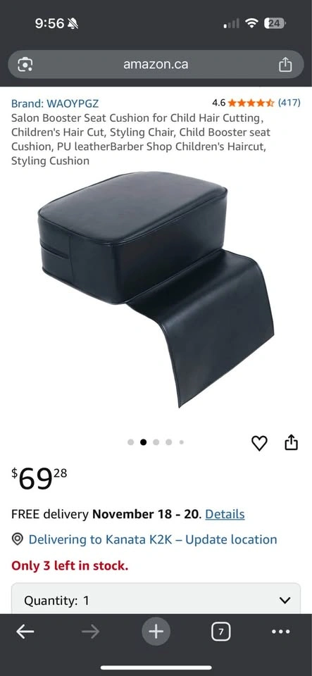 Buy & SellSalon Booster Seat Cushion for Child Hair CuttingSalon Booster Seat Cushion for Child Hair Cutting$35Cushion booster seat for hair, haircutting salons.WHERE TO MEETCheck LocationView MapSELLERverifiedCharlieBarrhaven831 review0 chats·0 favorites·2 views