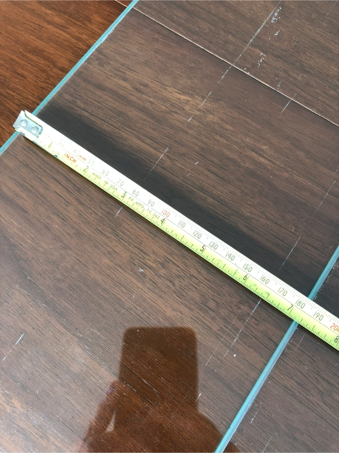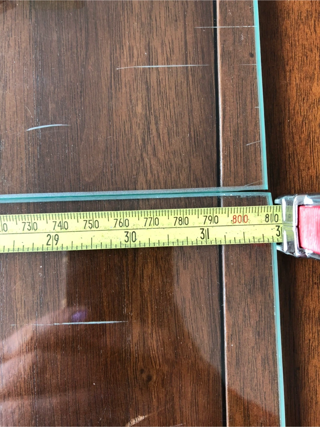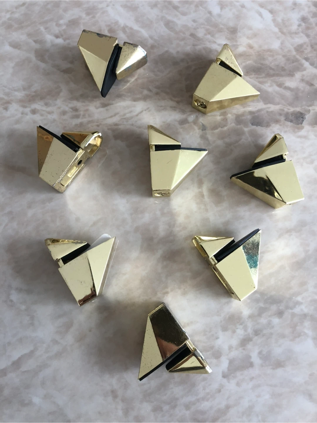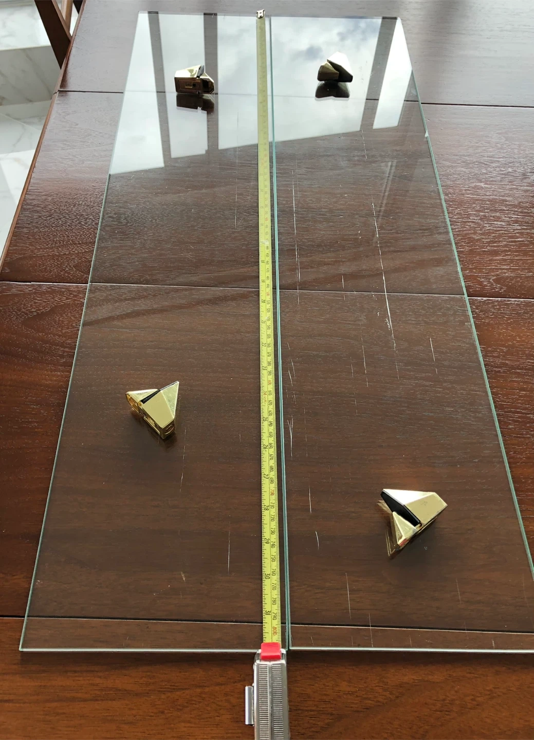 2474 glass shelves, each is 32” x 8” inches, along with gold-coloured brackets for mounting, good condition