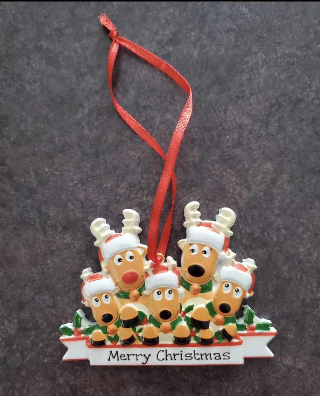 New Reindeer ornament with 5 hats family names can be added to! (I used a sharpie for ours. πŸ˜€) Pick up in Kitchener, $5