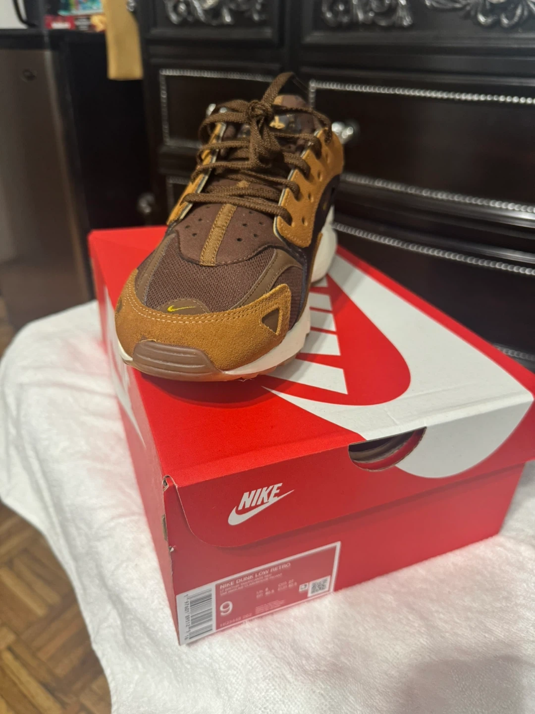 Selling a pair of Nike Huarache Runner sneakers in brown, size 9. They come with the original box! These shoes are in great condition and ready for a new home. Perfect for running or casual wear