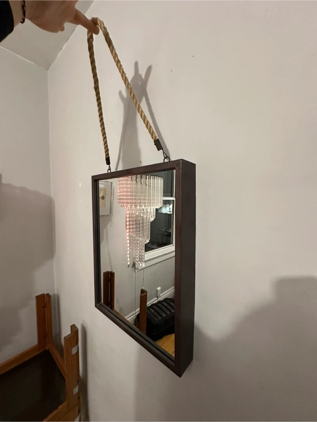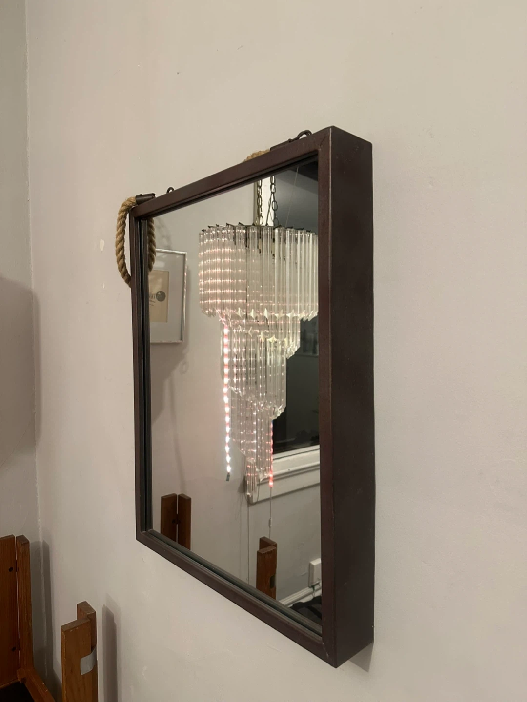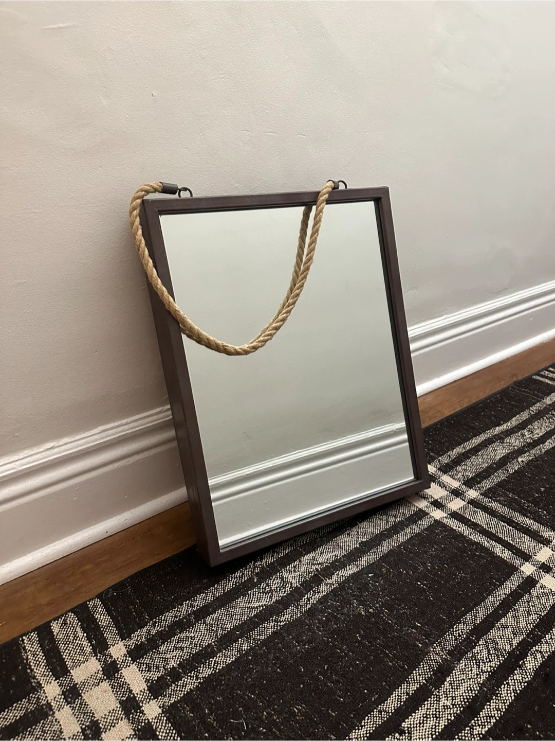 Mirror with Metal Frame and Rope Hanger