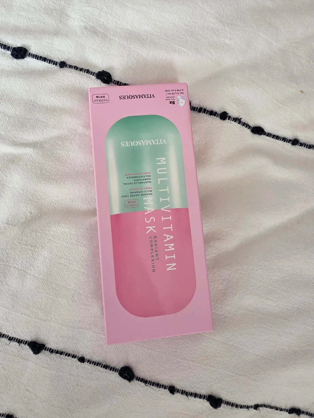 110Selling a box of Vitamasques Multivitamin Radiant Complexion face masks! Each box contains 4masks, with each mask containing 23ml/0.778 fl.oz. of serum. Perfect for hydrating your skin and giving it a radiant glow!