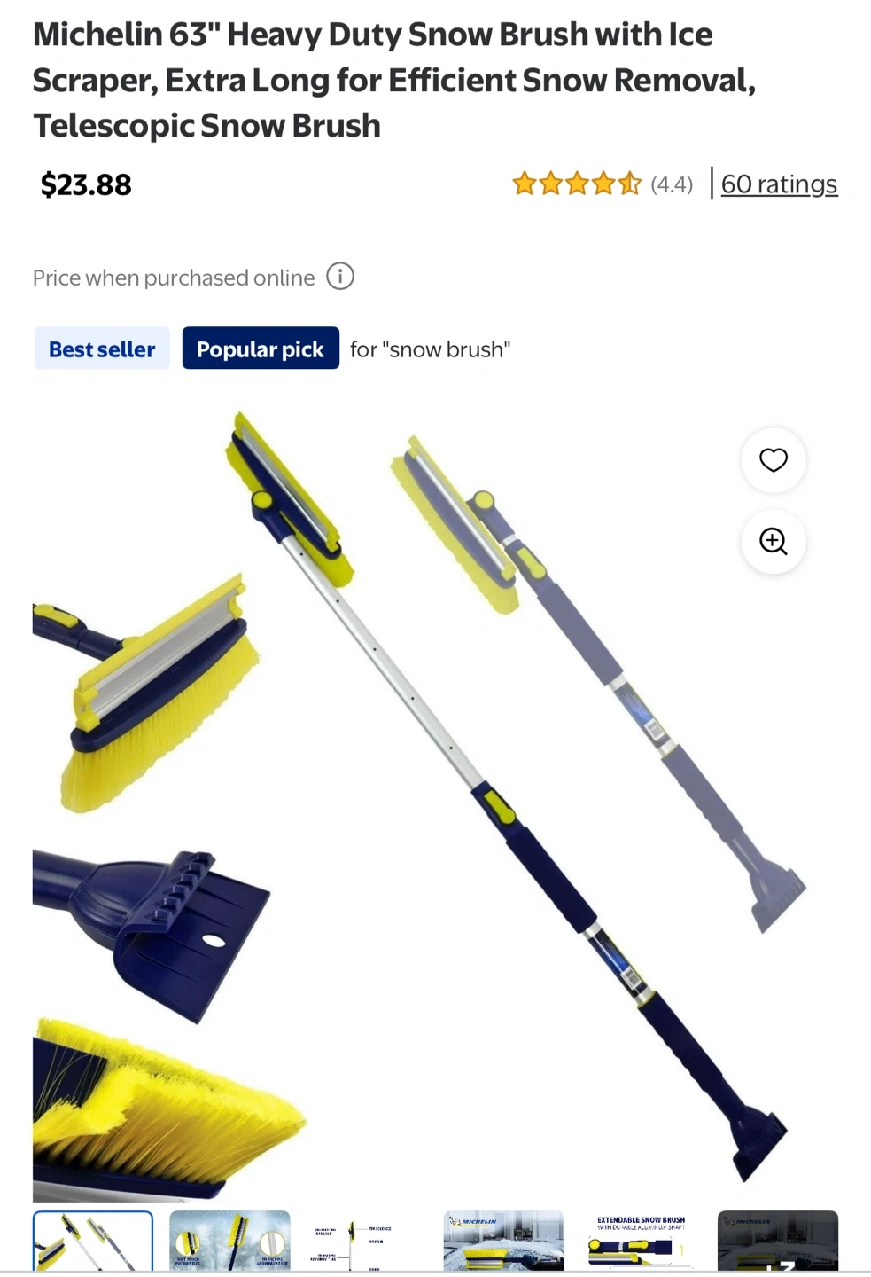 Get ready for winter with this heavy-duty Michelin snow brush! It extends up to 63 inches, making it easy to reach across your windshield and clear off snow. It also has an ice scraper for those tougher spots. Originally for $23.88
