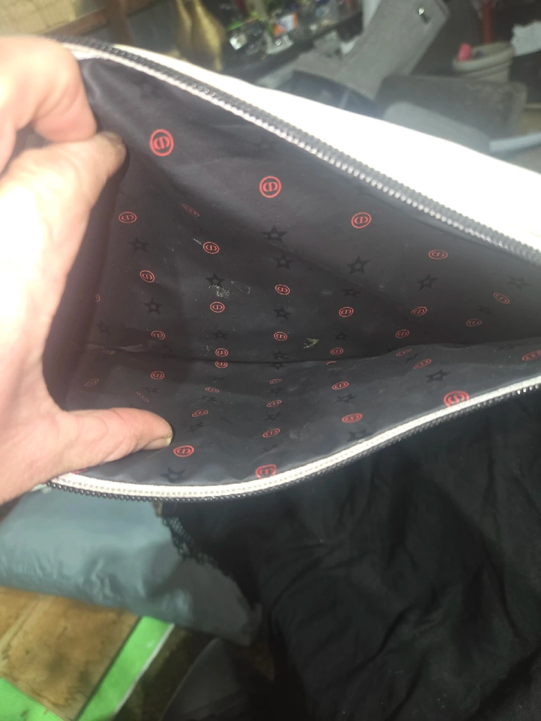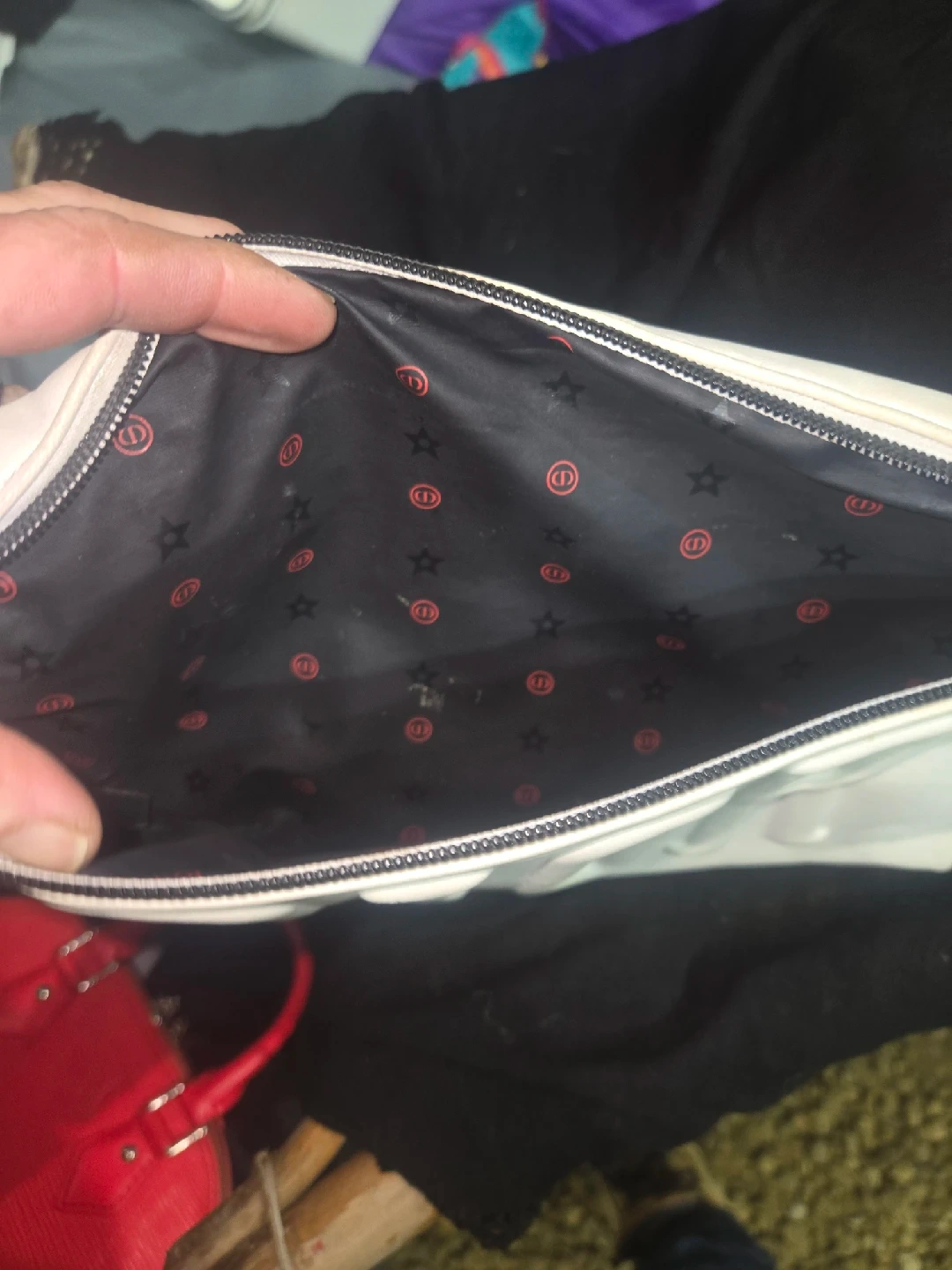 Selling a Dior white pouch. It has a zipper closure and a star charm on the zipper. The interior lining is black with a Dior logo pattern, carrot says $150, im selling half off for $75.00